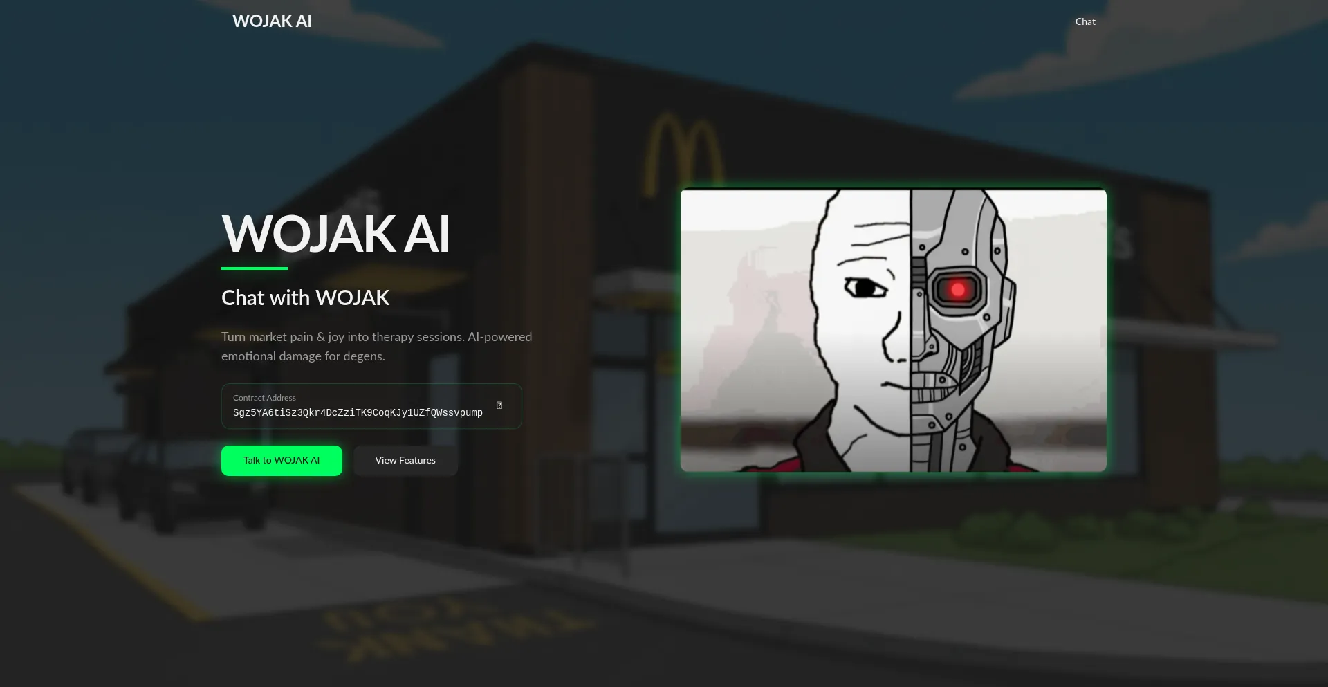 Turn market pain & joy into therapy sessions. AI-powered emotional support for crypto degens. Chat with WOJAK AI about your portfolio, emotions, and degen decisions.