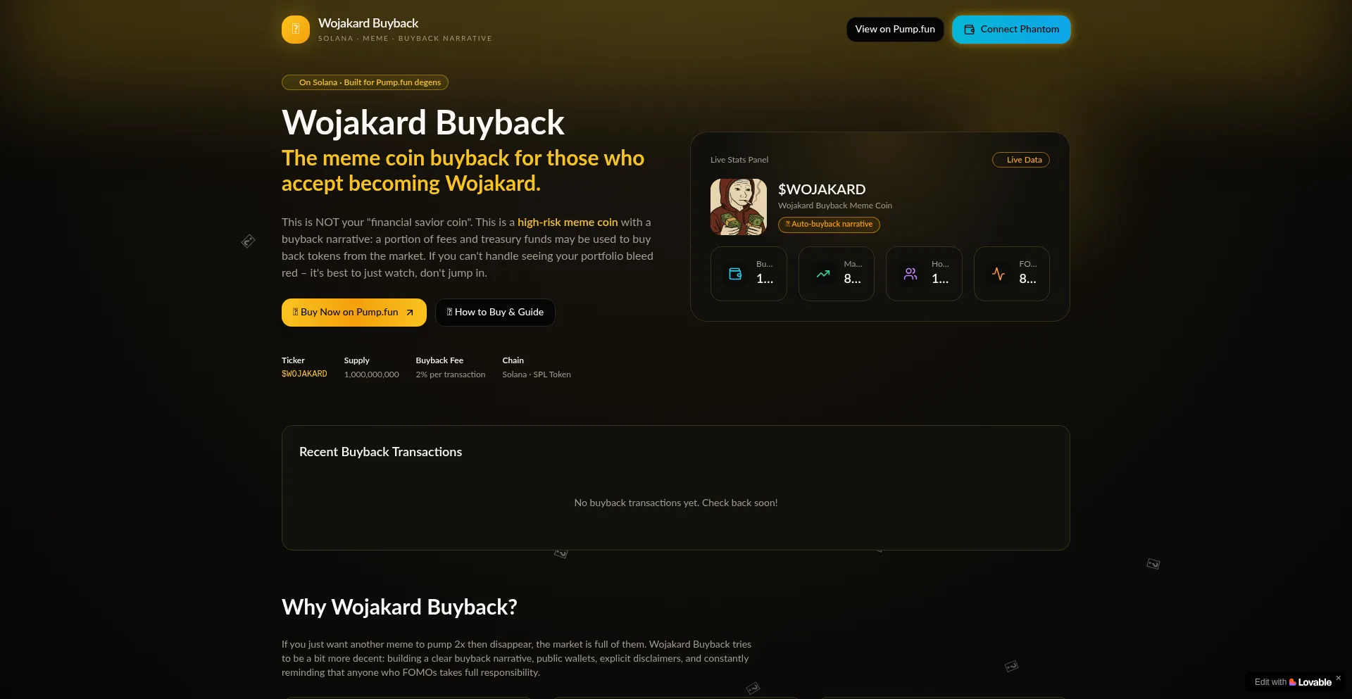 Wojakardbuyback.lovable.app Website Review