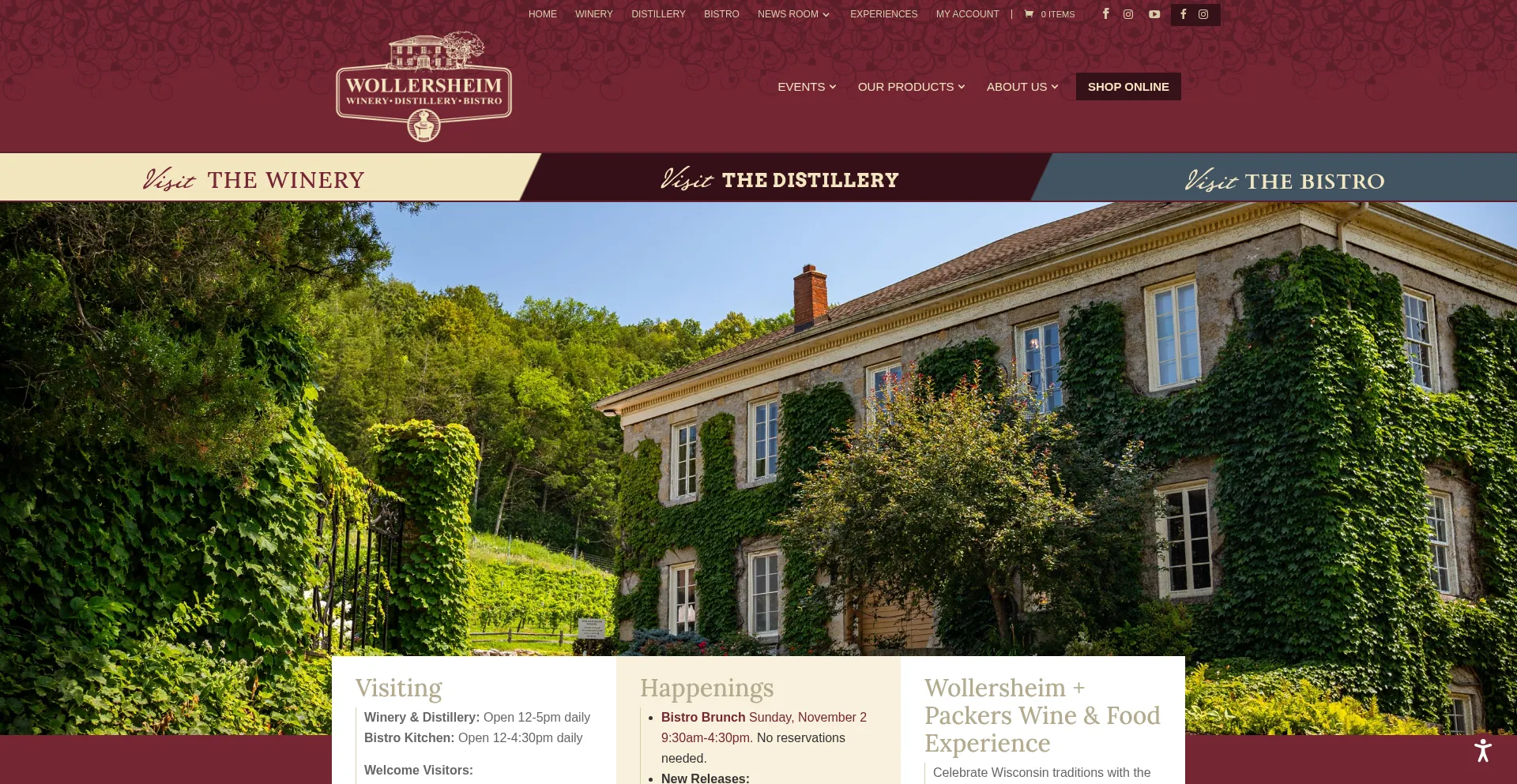Wollersheim Winery, Distillery and Bitsro - located in scenic Prairie du Sac, Wisconsin. Authentic, local, award winning wine and brandy since the 1840s.
