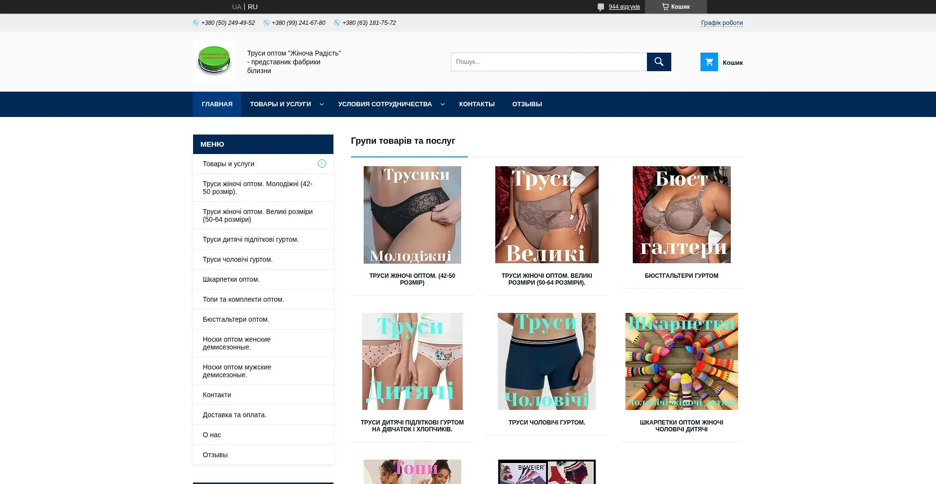 "Труси оптом «Жіноча Радість» - представник фабрики білизни" - контакти, товари, послуги, ціни