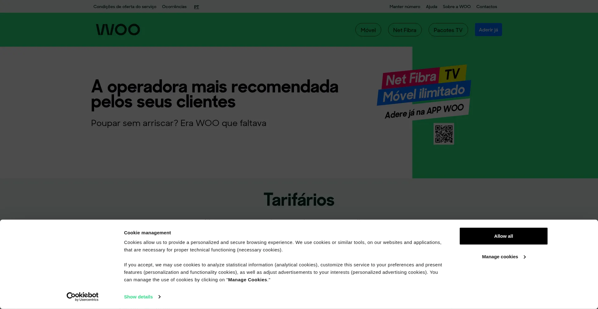 The website implements cookie consent mechanisms in compliance with privacy regulations such as GDPR or CCPA. This demonstrates that woo.pt adheres to data protection standards and provides users with control over personal data collection practices.
