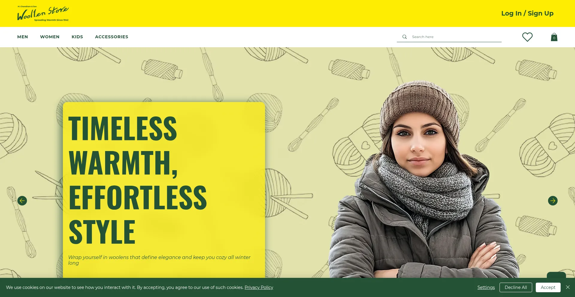 The website implements cookie consent mechanisms in compliance with privacy regulations such as GDPR or CCPA. This demonstrates that woollenstore.com adheres to data protection standards and provides users with control over personal data collection practices.