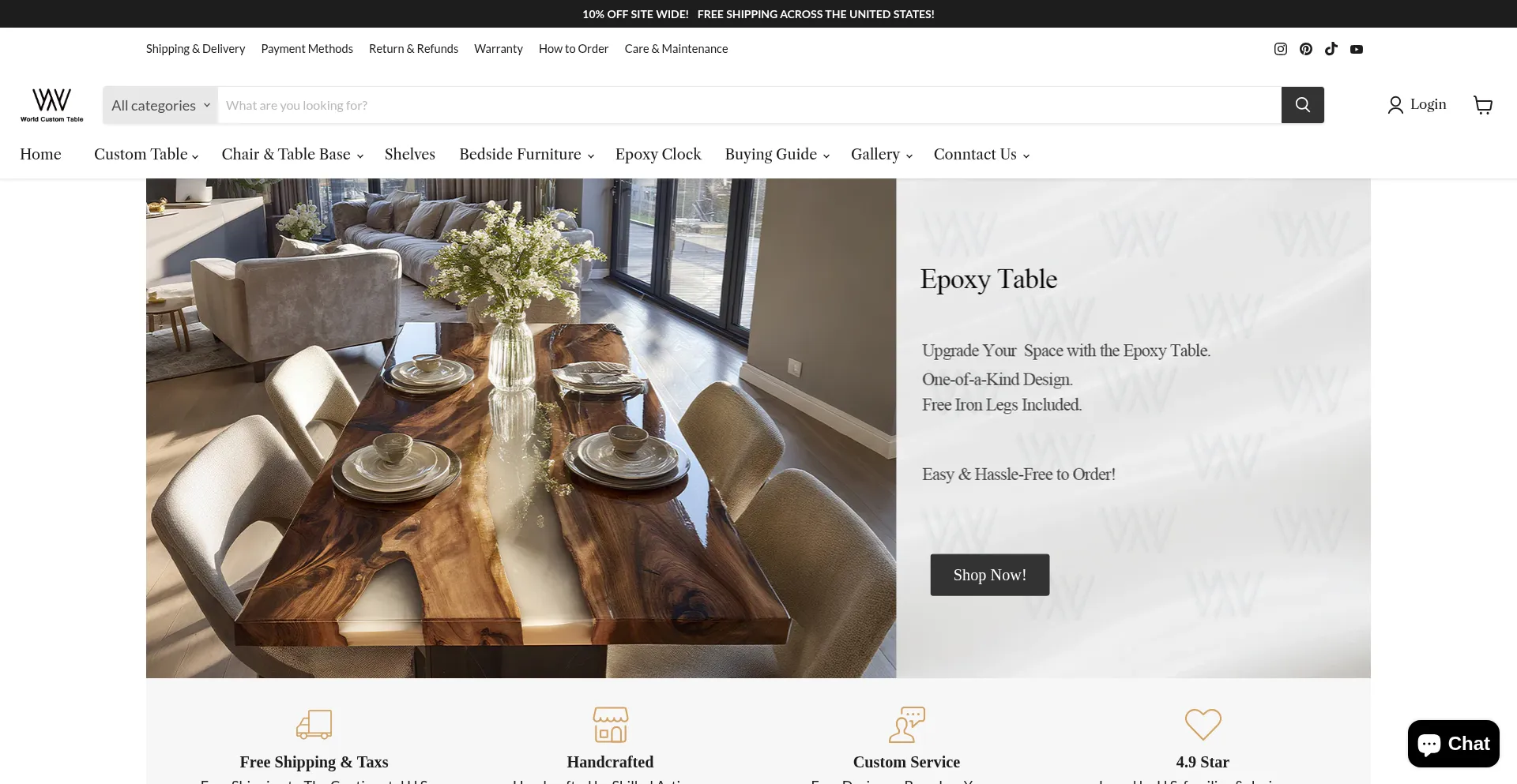 Our analyzer determines that website worldcustomtable.com is using Shopify CMS. Shopify is a popular e-commerce platform, powering around 4.4% of websites globally.