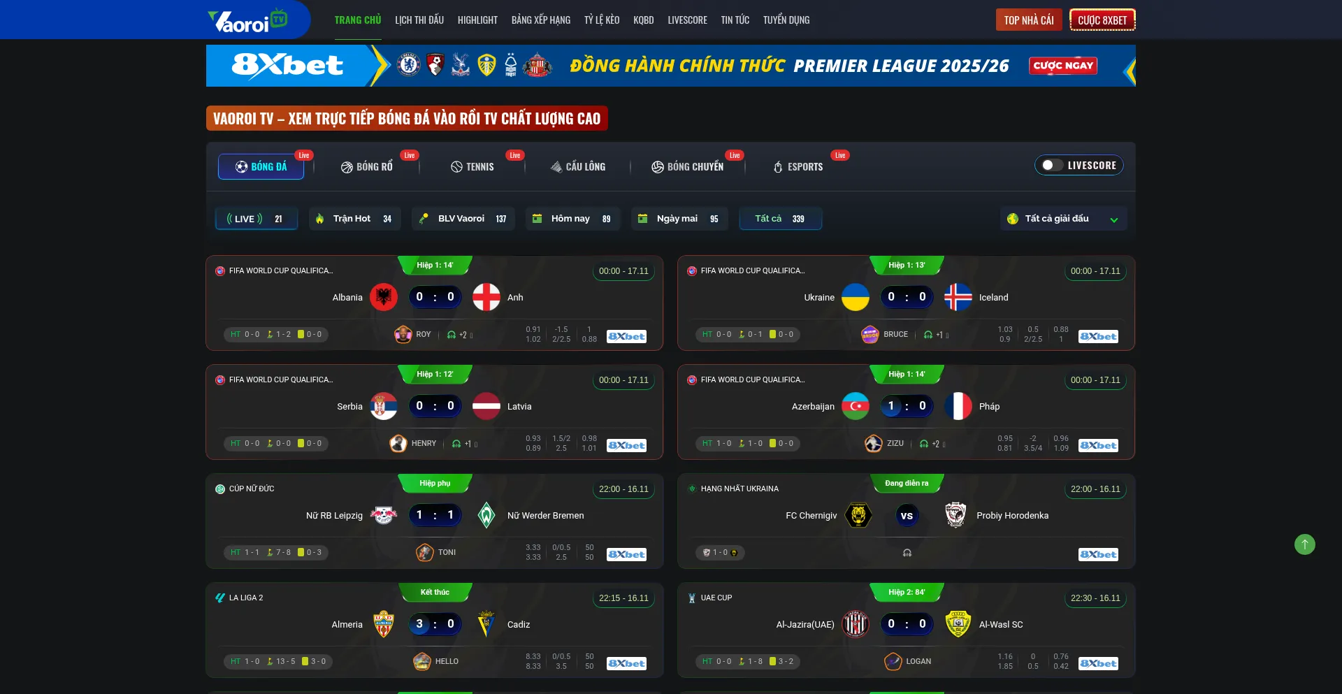 Vaoroi TV xem trực tiếp bóng đá chất lương cao, miễn phí. Link VaoroiTV bóng đá trực tuyến K+, VTV6, VTC có bình luận tiếng Việt, không quảng cáo.