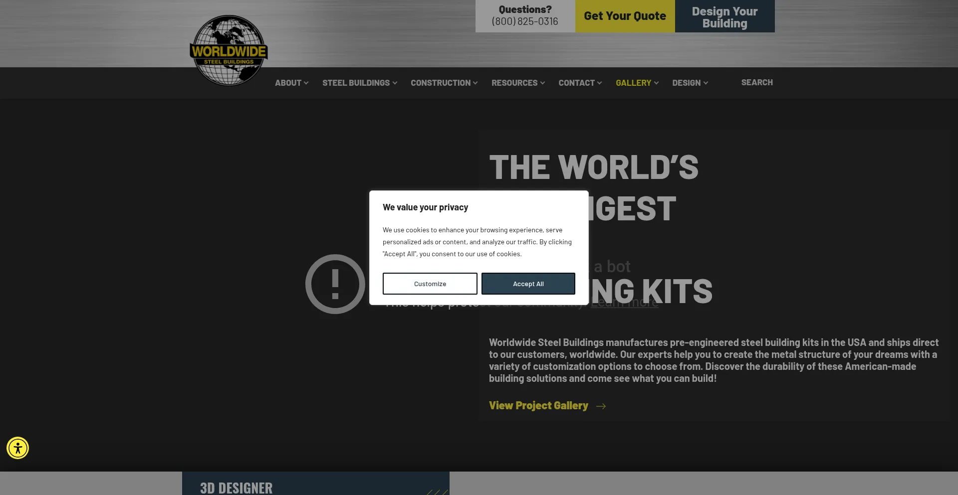 The website implements cookie consent mechanisms in compliance with privacy regulations such as GDPR or CCPA. This demonstrates that worldwidesteelbuildings.com adheres to data protection standards and provides users with control over personal data collection practices.
