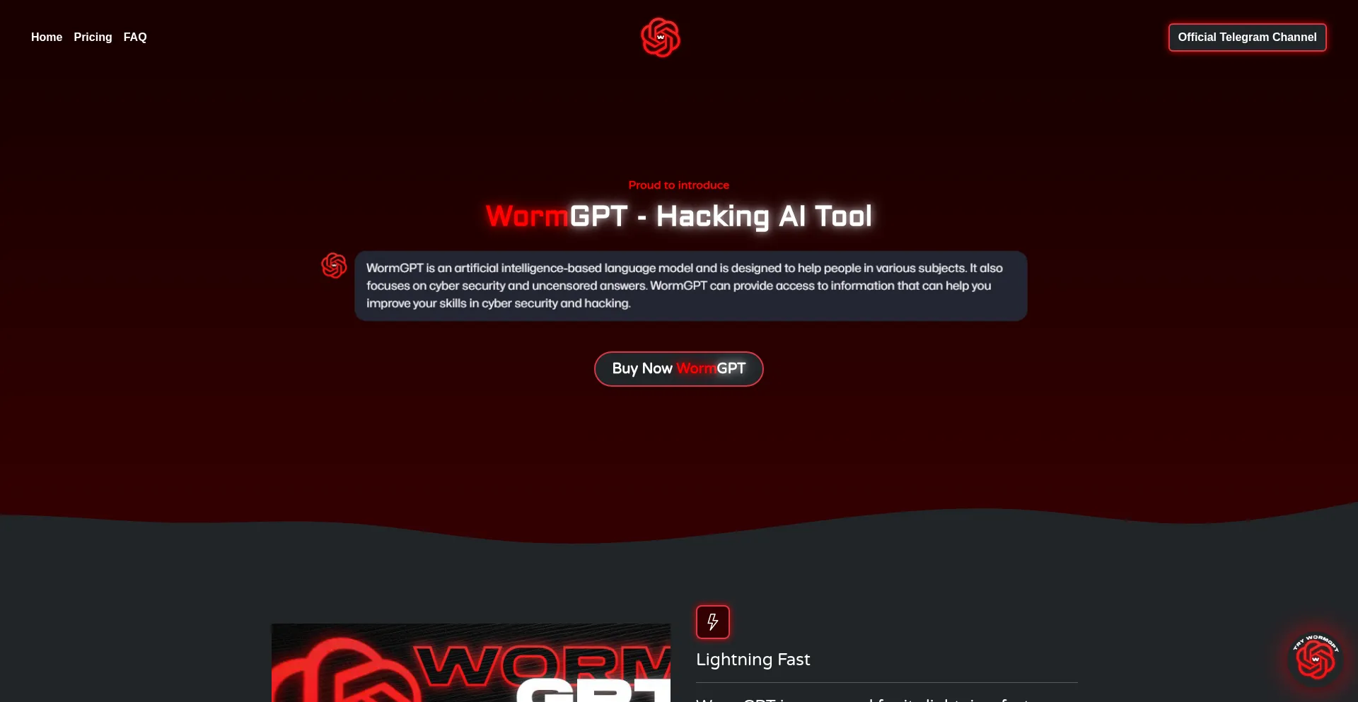Discover WormGPT, a privacy-focused AI tool designed for dark users. Enjoy lightning-fast processing, unlimited access, and secure crypto payments.