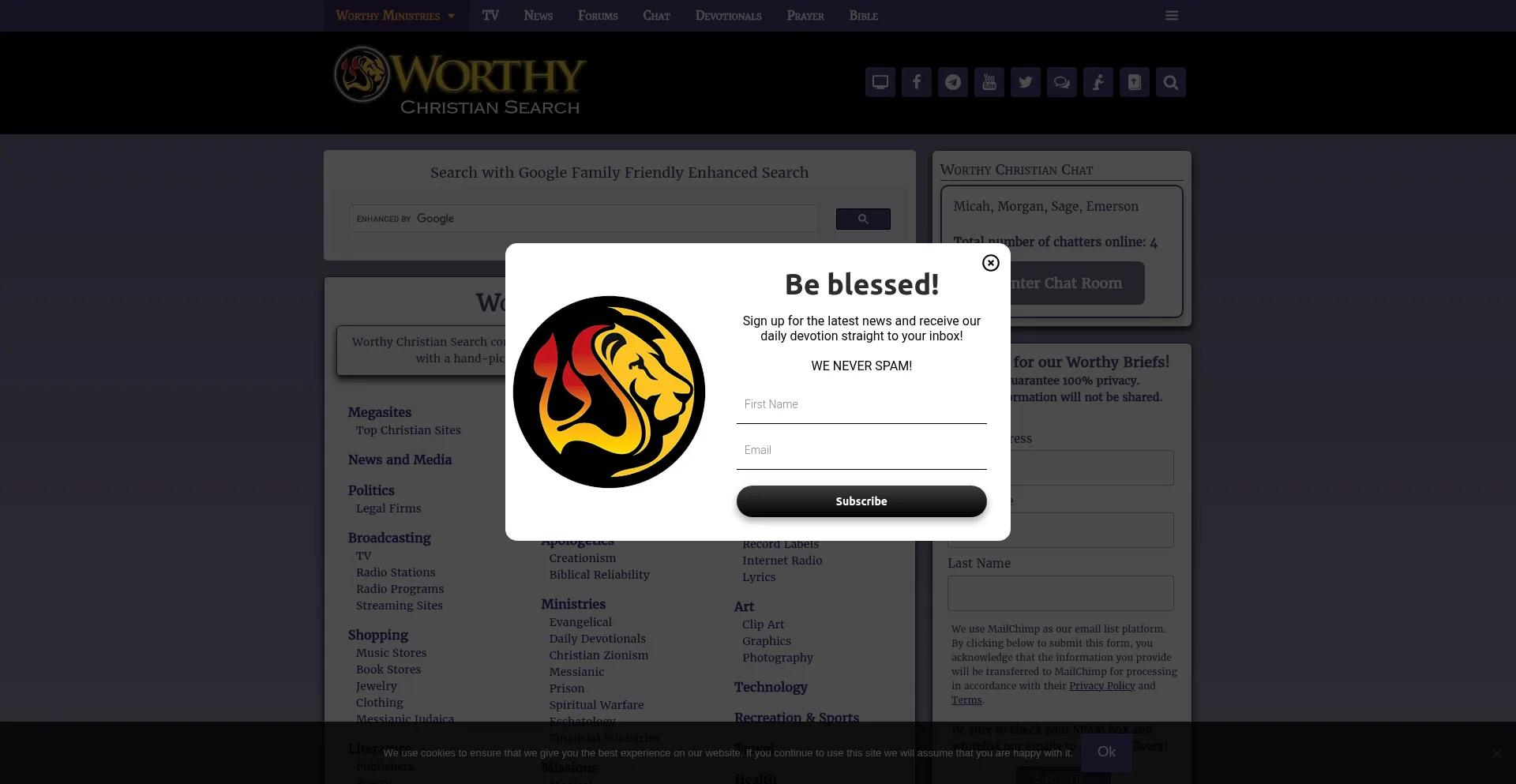 The website implements cookie consent mechanisms in compliance with privacy regulations such as GDPR or CCPA. This demonstrates that worthychristiansearch.com adheres to data protection standards and provides users with control over personal data collection practices.