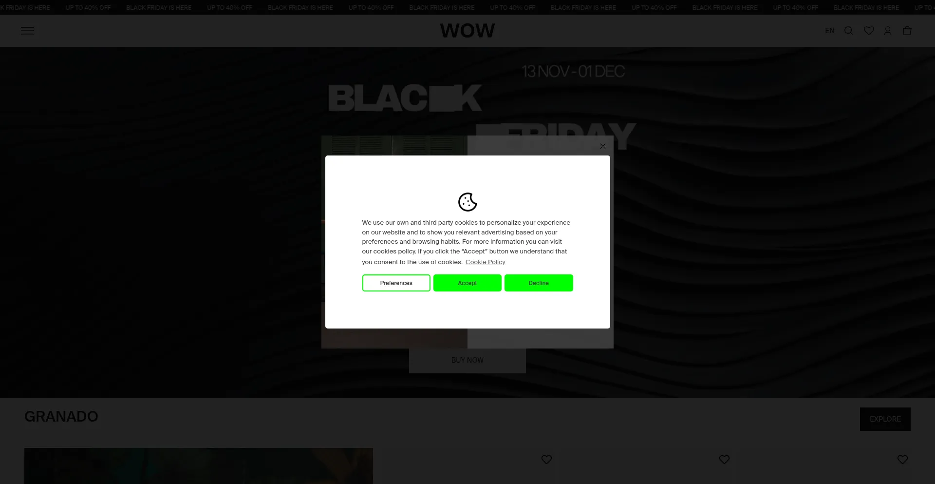 The website implements cookie consent mechanisms in compliance with privacy regulations such as GDPR or CCPA. This demonstrates that wowconcept.com adheres to data protection standards and provides users with control over personal data collection practices.