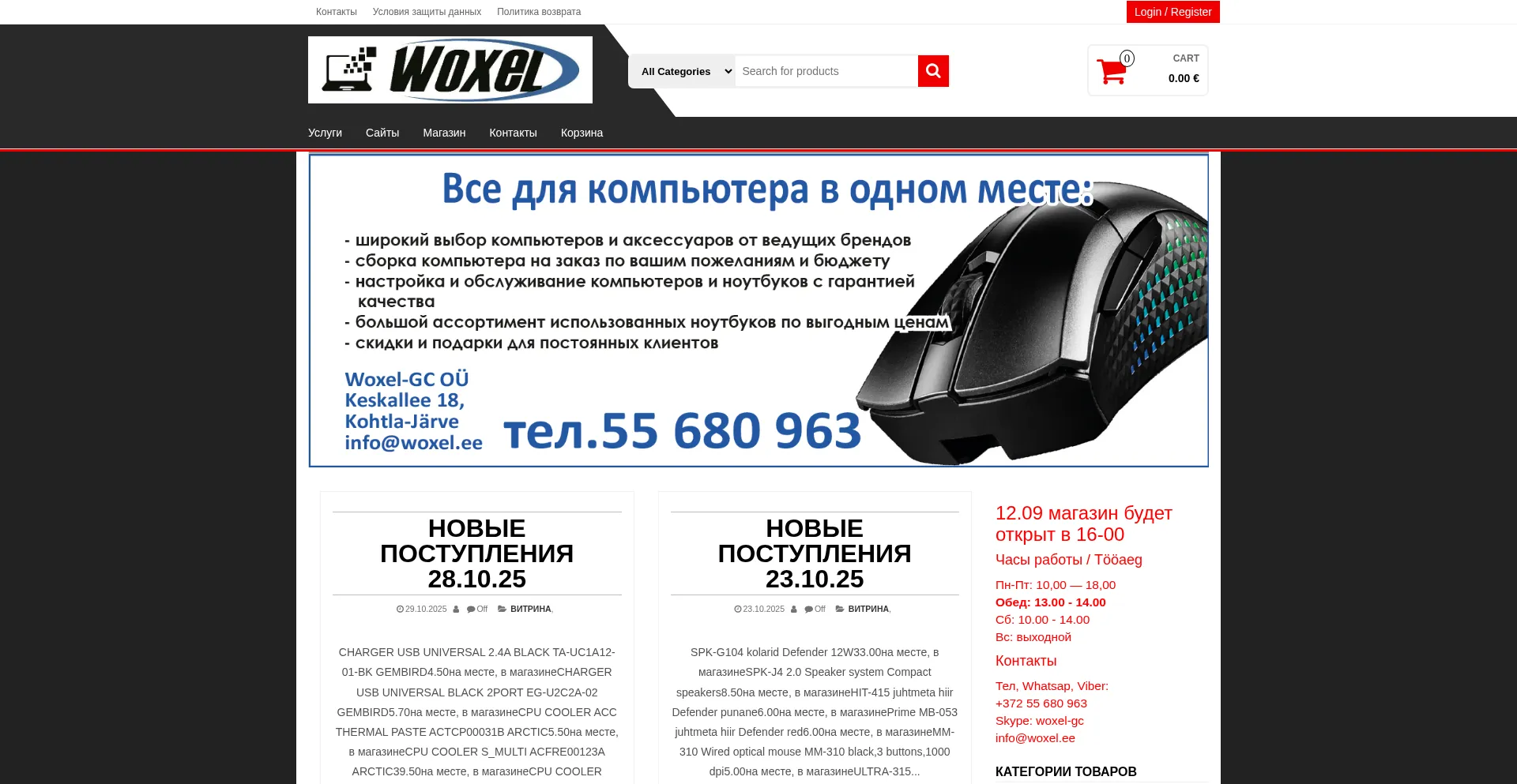 Analysis indicates that woxel.ee operates as an e-commerce platform facilitating online transactions for goods or services. The website implements shopping cart functionality, payment processing systems, and product catalog features typical of commercial retail operations.