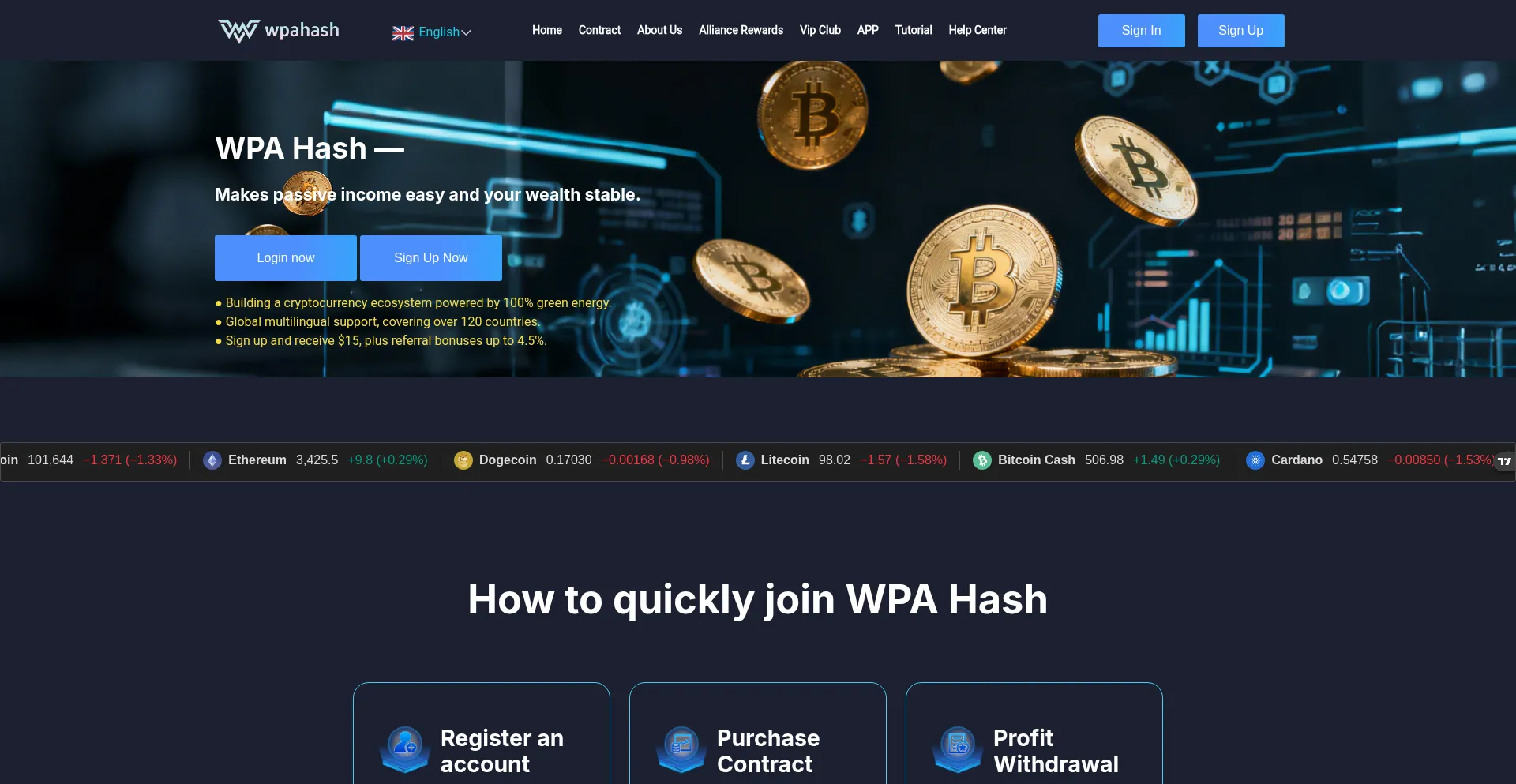 WPAHash is a platform focused on computing power services, dedicated to providing secure, efficient, and transparent crypto asset value-added solutions to users worldwide. Throu...