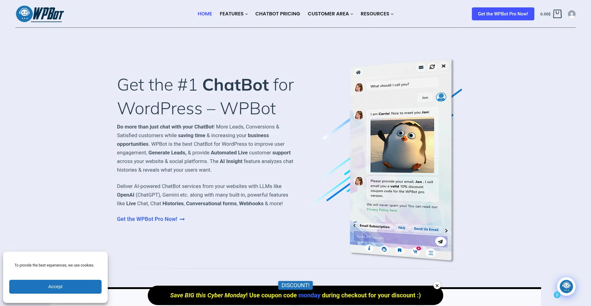 Do more with an OMNICHANNEL & the Best AI ChatBot for WordPress WPBot! Generate Leads & provide Automated Live Support for your Customers.