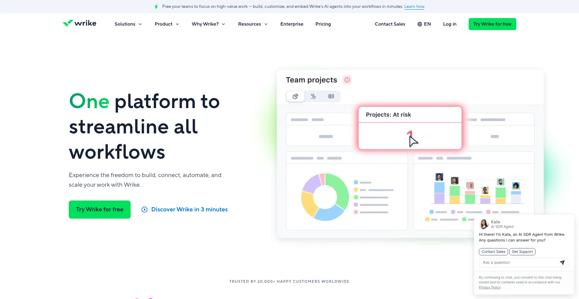 Easily build, connect, and scale workflows with Wrike. Enjoy 360° visibility, seamless collaboration, and the freedom to let work flow.