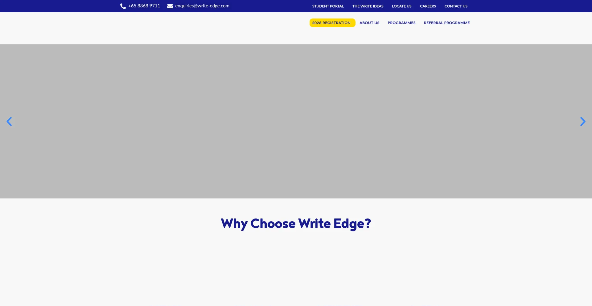 Write Edge offers English writing classes in Singapore. 14 years of experience. 75% of students achieve PSLE AL1–4. Programmes for Primary and Secondary levels.