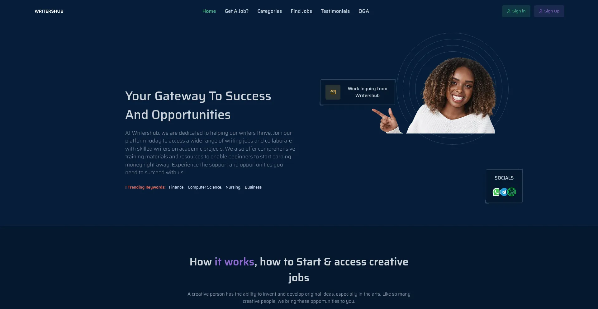 At Writershub, we connect writers with numerous writing jobs and offer training materials and resources for beginners to start earning money immediately.