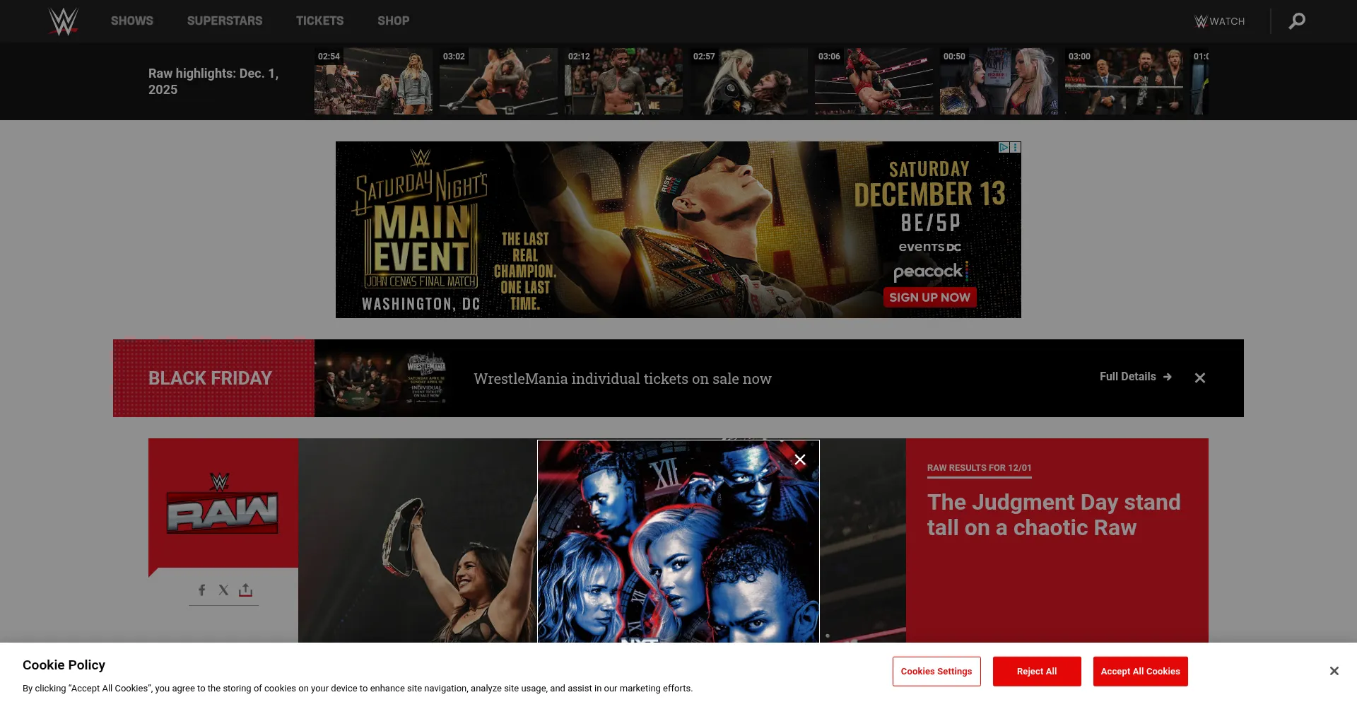 The website implements cookie consent mechanisms in compliance with privacy regulations such as GDPR or CCPA. This demonstrates that wwe.com adheres to data protection standards and provides users with control over personal data collection practices.