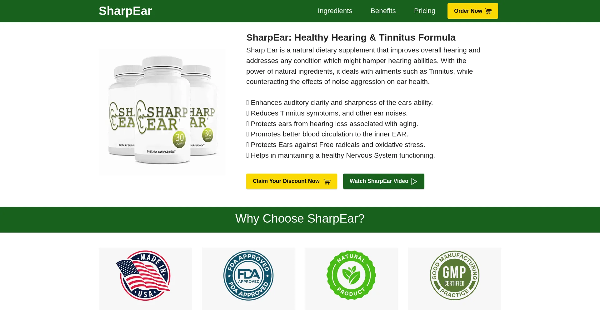 SharpEar is a completely natural formula that addresses hearing problems and improves the overall ear condition, counteracts the impact of noise aggression.