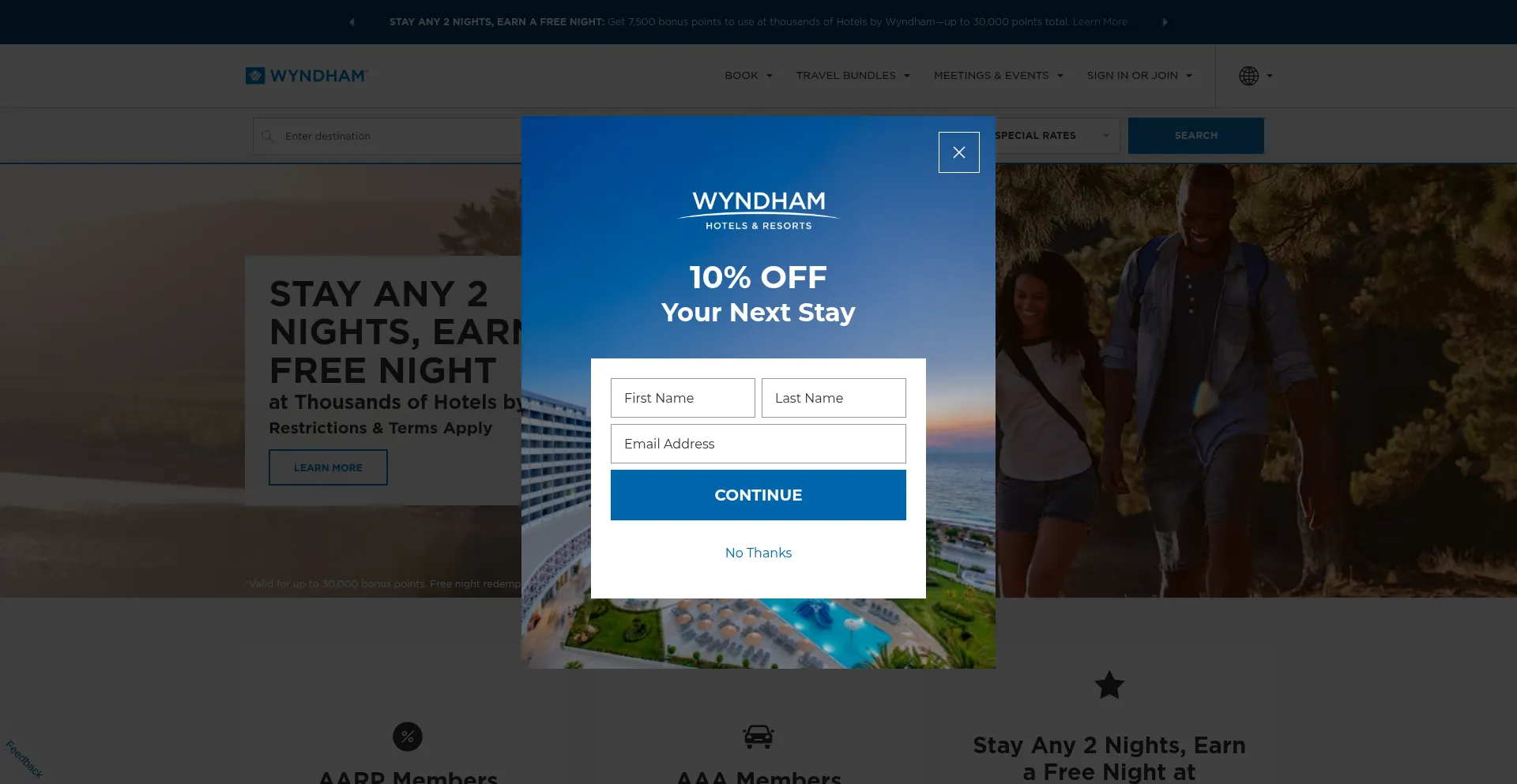 The wyndham.com website implements data collection forms requesting personal information including names, email addresses, phone numbers, or other sensitive details. Users should verify the legitimacy of it and review privacy policies before submitting personal data.