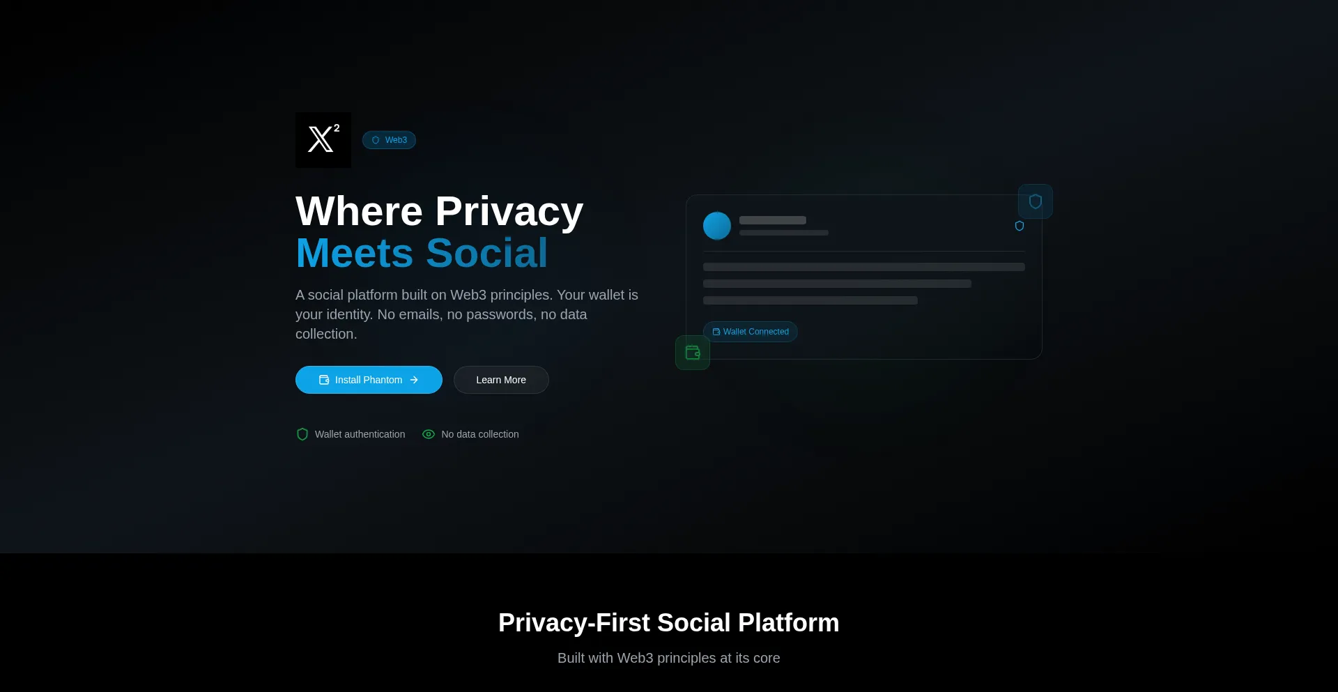 X2 is a private social platform where privacy meets social. Connect with your wallet, share encrypted posts, and message securely with end-to-end encryption.