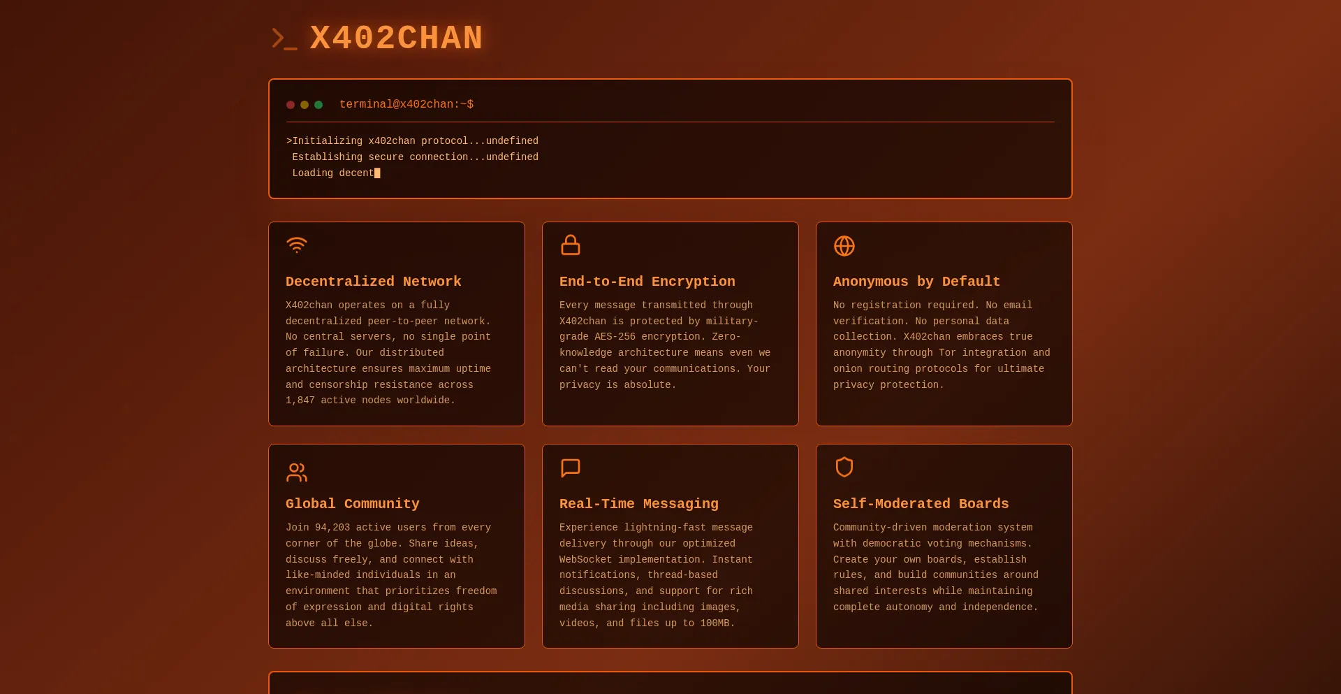 X402chan.xyz operates as a suspicious website with multiple red flags that compromise its trustworthiness and user safety. The platform exhibits concerning characteristics including misleading information, questionable operational practices, or potential malware distribution that poses significant risks to visitors.