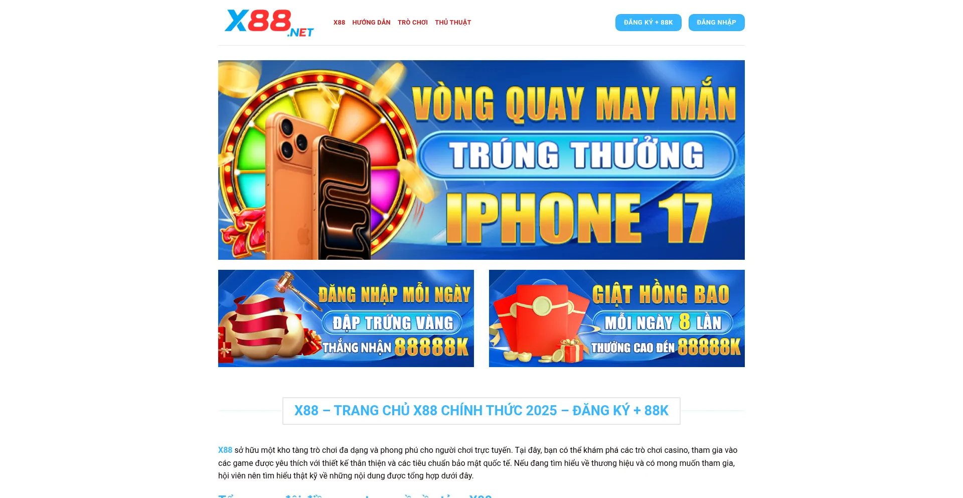 X88 | TRANG CHỦ 8XX.NET KHÔNG CHẶN ĐĂNG KÝ + 88K