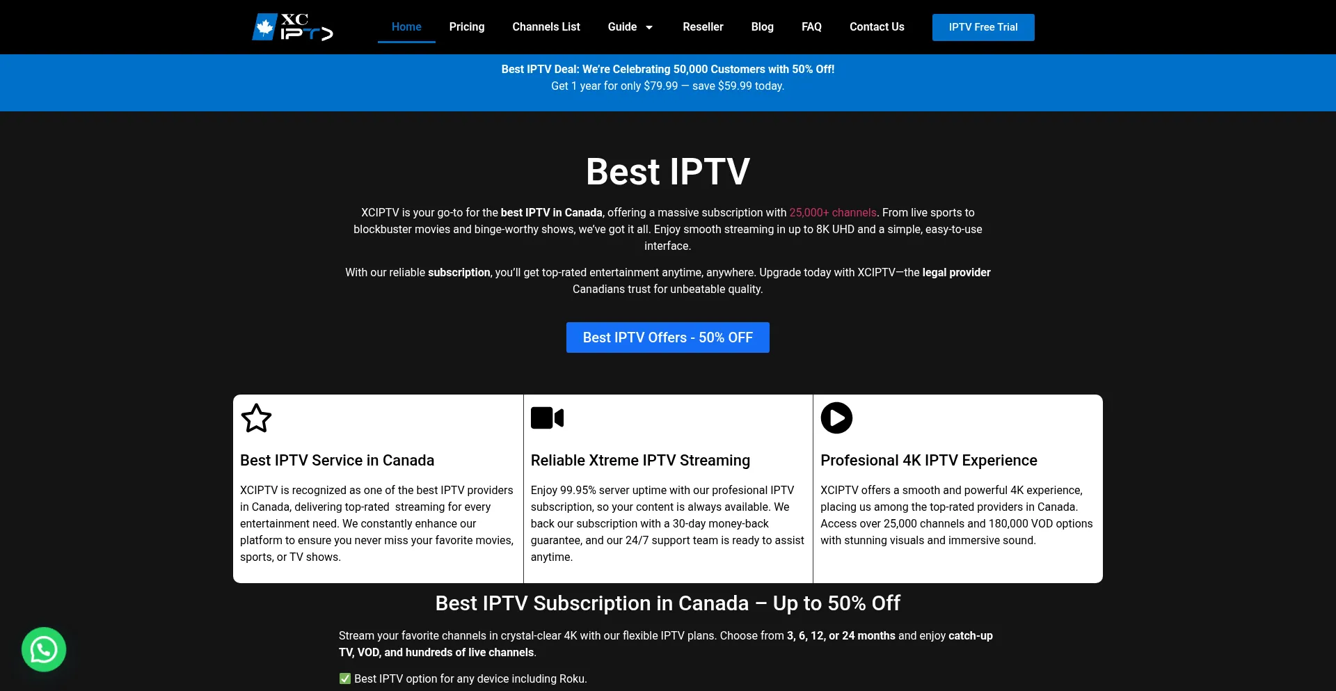 XCIPTV offers the Best IPTV subscription in Canada. 4K streaming and easy setup in less than 5 min, no buffering, no cuts, all at 50% off!