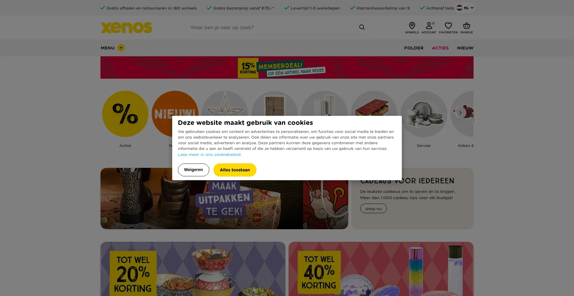 The website implements cookie consent mechanisms in compliance with privacy regulations such as GDPR or CCPA. This demonstrates that xenos.nl adheres to data protection standards and provides users with control over personal data collection practices.
