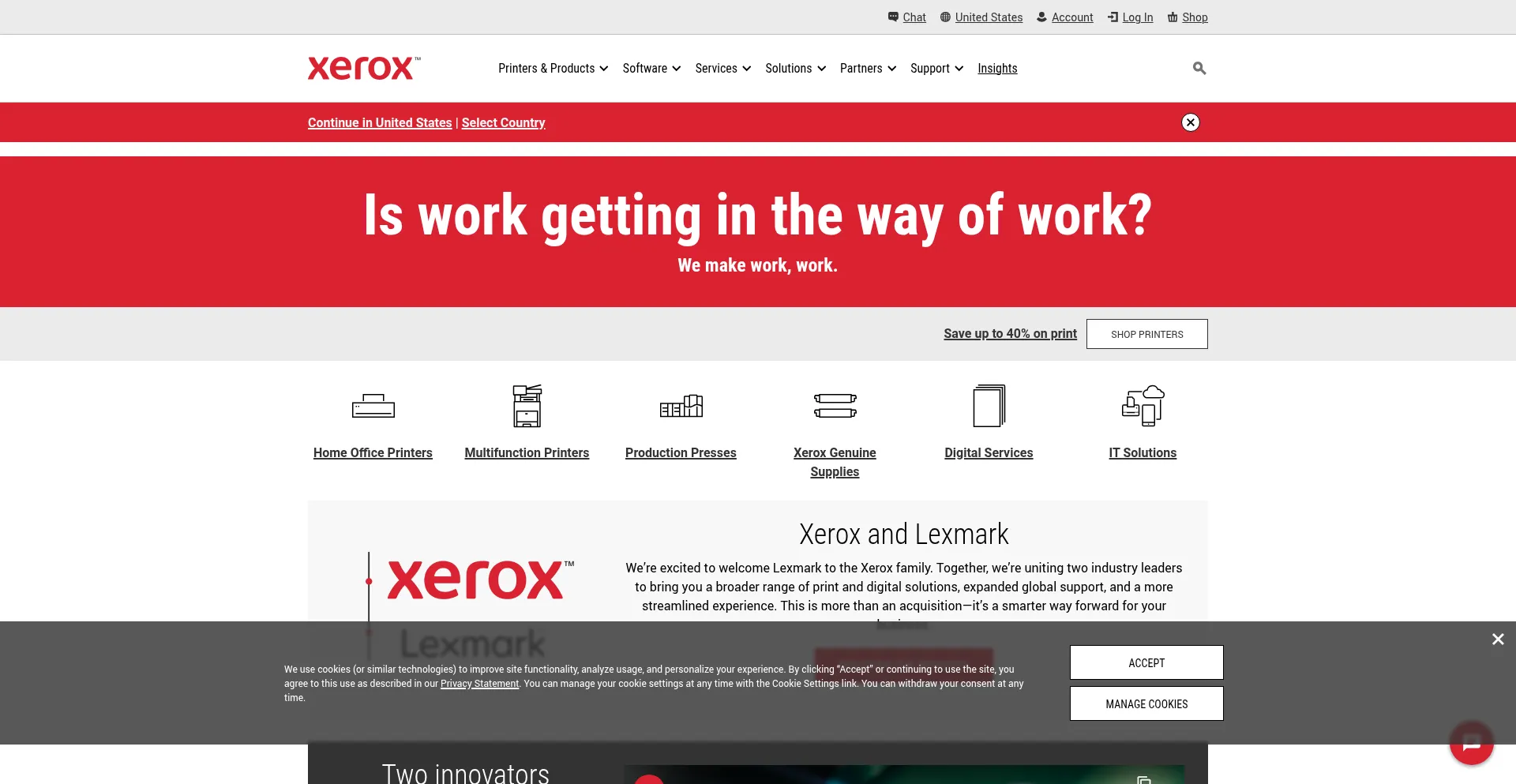 The website implements cookie consent mechanisms in compliance with privacy regulations such as GDPR or CCPA. This demonstrates that xerox.com adheres to data protection standards and provides users with control over personal data collection practices.