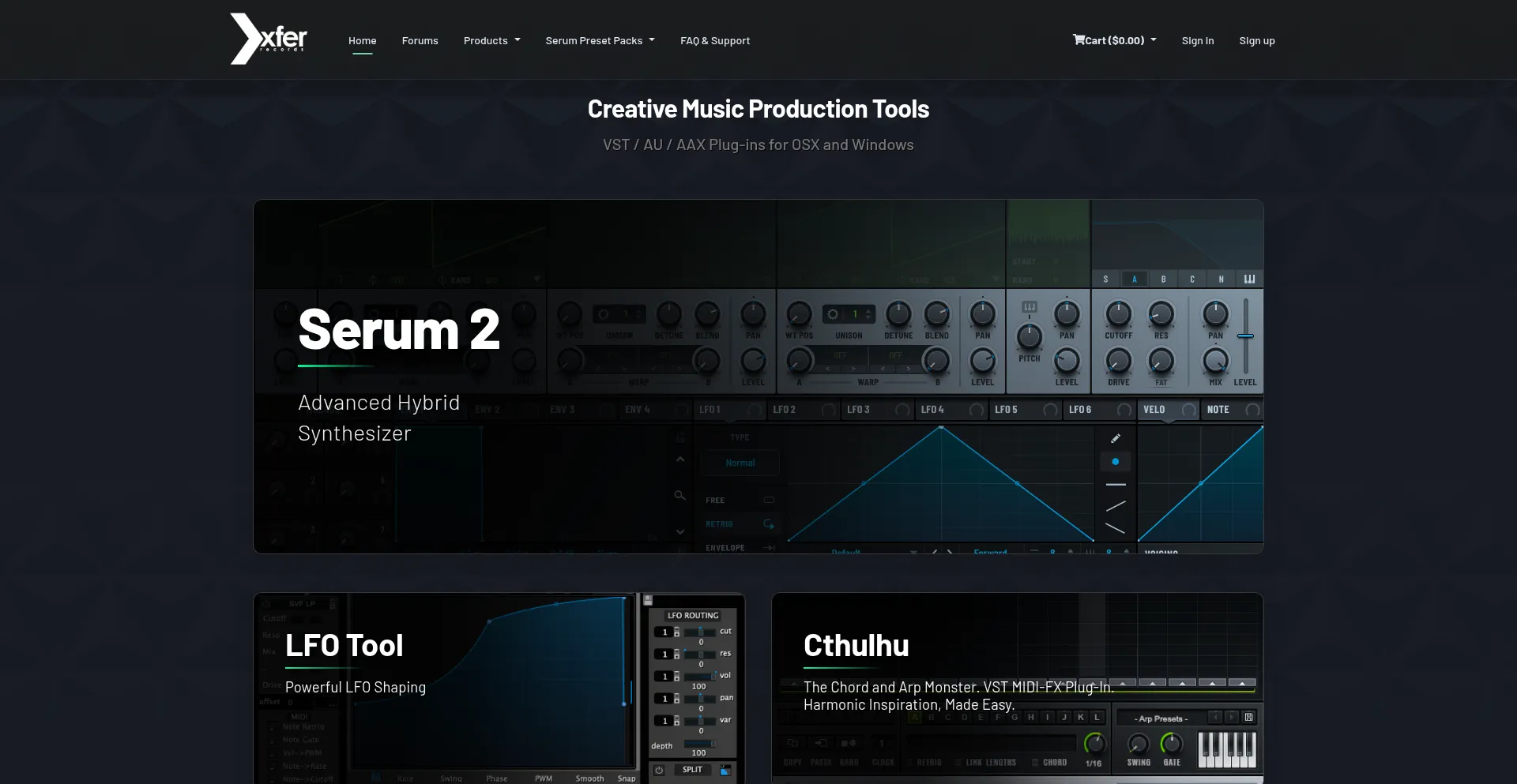 Xfer Records creates professional VST plug-ins including Serum 2, the advanced wavetable synthesizer for music production. Download Serum, Cthulhu, and LFOTool.