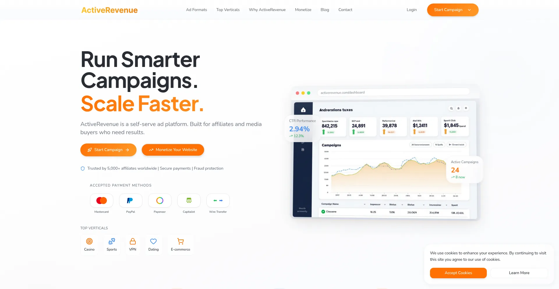Launch profitable campaigns with ActiveRevenue's self-serve ad platform and ad network. Get global traffic, fast approvals, and real-time stats for affiliate marketing success.