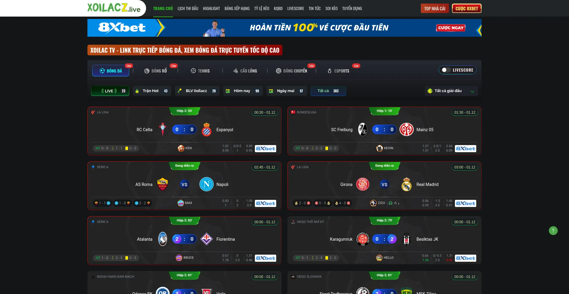 Tường thuật bóng đá trực tuyến miễn phí tại Xoilacz.co full HD. Link Xoilac TV Trực Tiếp Bóng Đá cùng bình luận xem bóng đá tiếng Việt lượn...