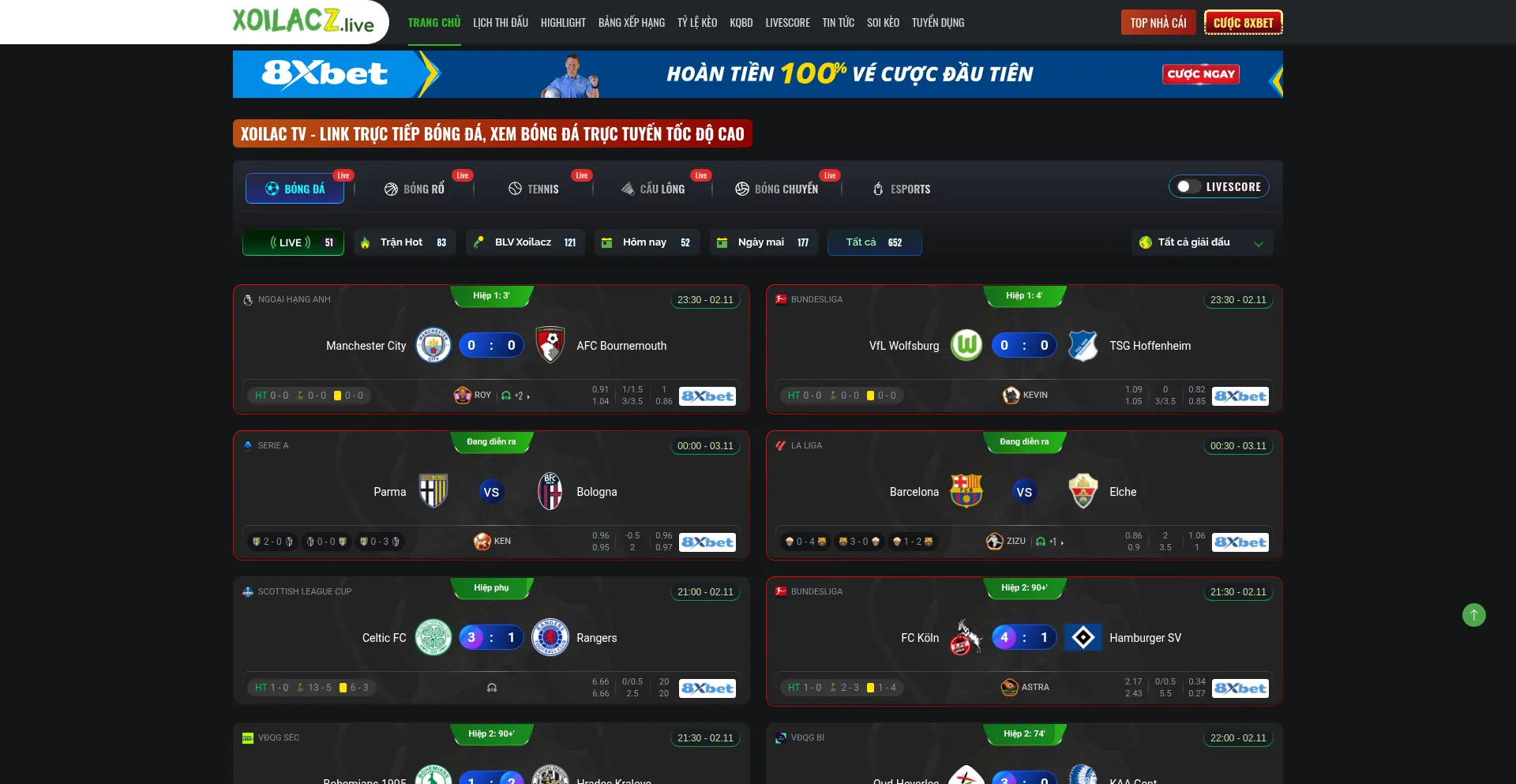 Tường thuật bóng đá trực tuyến miễn phí tại Xoilacz.co full HD. Link Xoilac TV Trực Tiếp Bóng Đá cùng bình luận xem bóng đá tiếng Việt lượn...