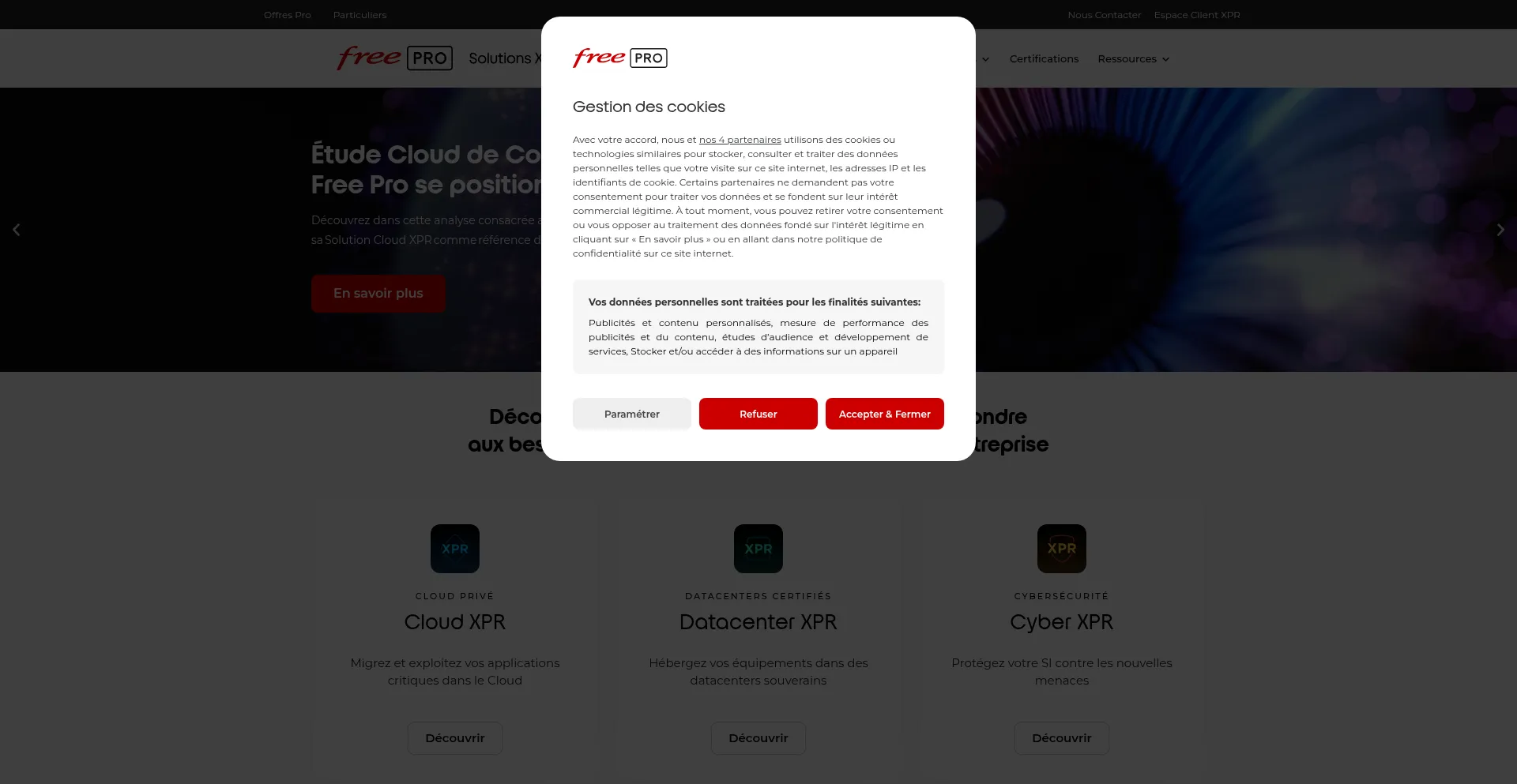Découvrez nos solutions Free Pro XPR de Cloud, datacenter, cybersécurité, réseau, mobilité, téléphonie pour répondre à vos besoins.