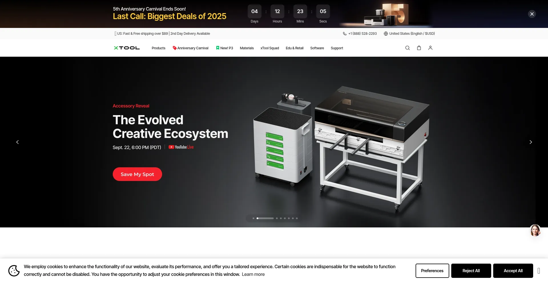 The website implements cookie consent mechanisms in compliance with privacy regulations such as GDPR or CCPA. This demonstrates that xtool.com adheres to data protection standards and provides users with control over personal data collection practices.