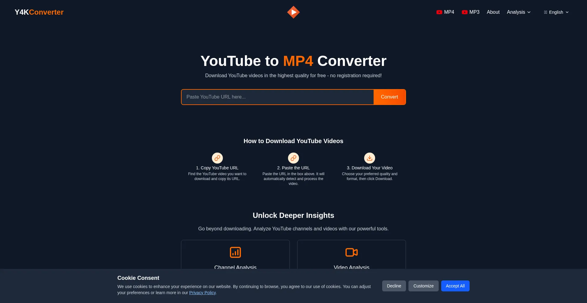 The website implements cookie consent mechanisms in compliance with privacy regulations such as GDPR or CCPA. This demonstrates that y4kconvert.com adheres to data protection standards and provides users with control over personal data collection practices.