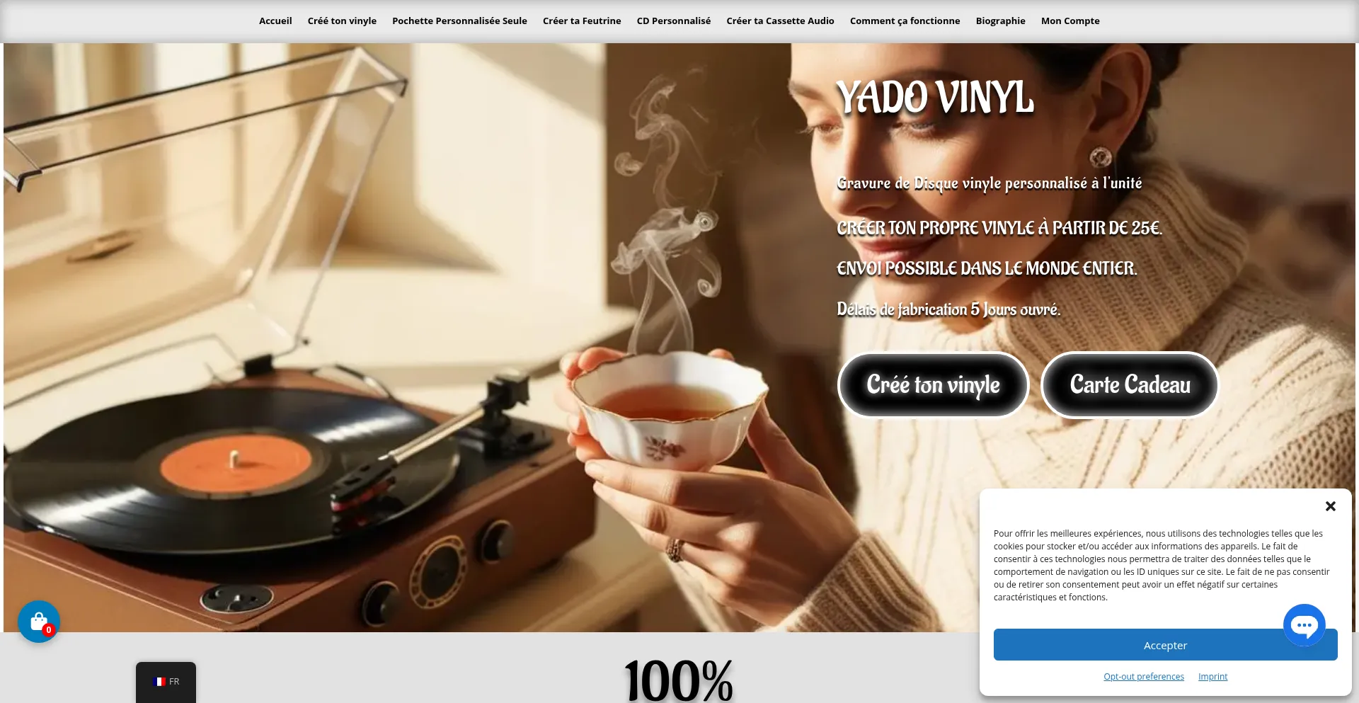 The website implements cookie consent mechanisms in compliance with privacy regulations such as GDPR or CCPA. This demonstrates that yado-vinyl.fr adheres to data protection standards and provides users with control over personal data collection practices.