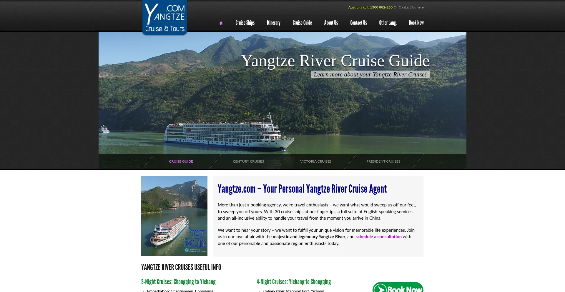Yangtze.com is a Yangtze River Cruises Specialist travel agency, offers discounted prices for Century Cruises, Victoria Cruises, President Cruises, Yangtze Gold Cruises, China G...