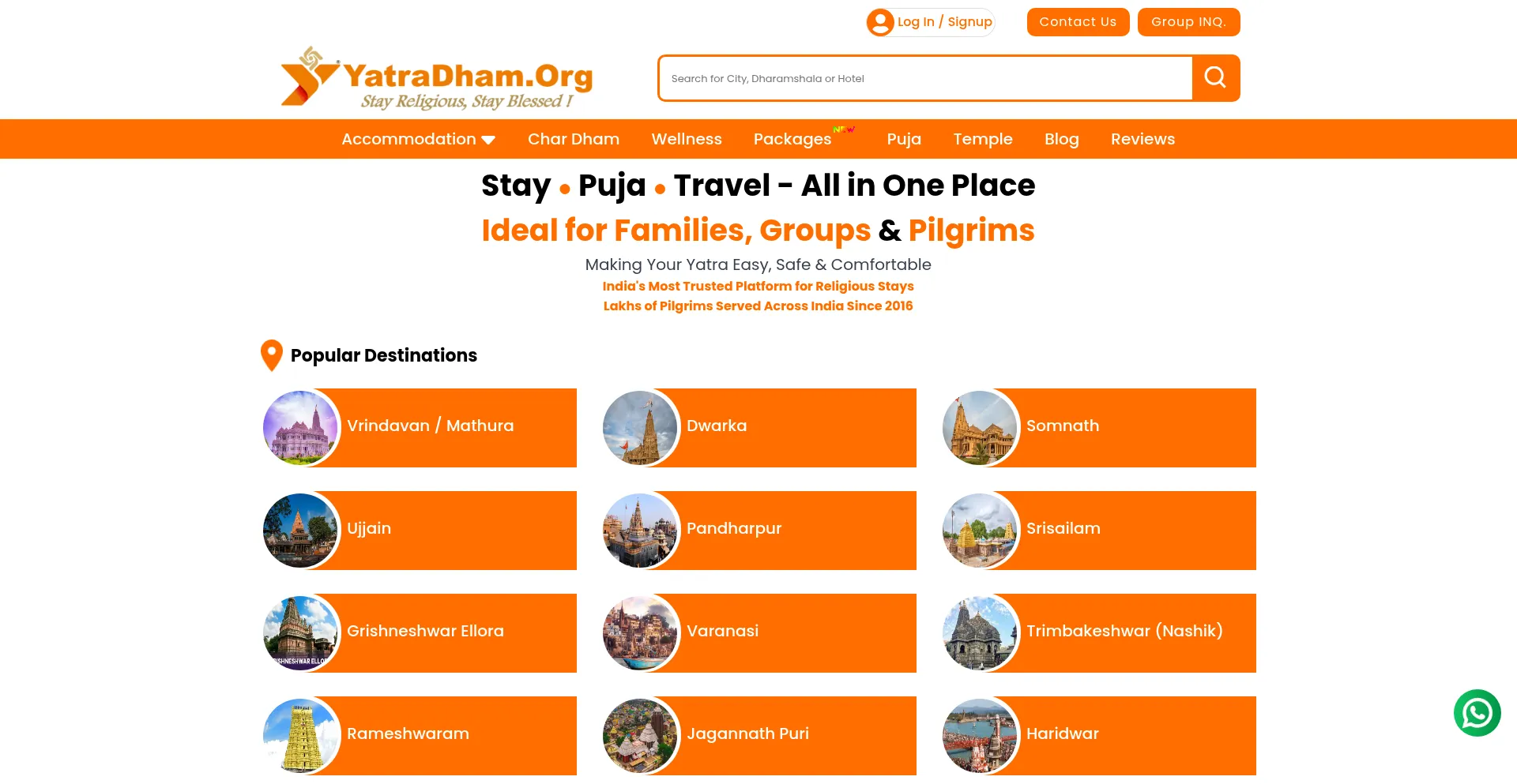 YatraDham.Org | Room Booking of Dharamshala, Ashram and Temple Accommodation