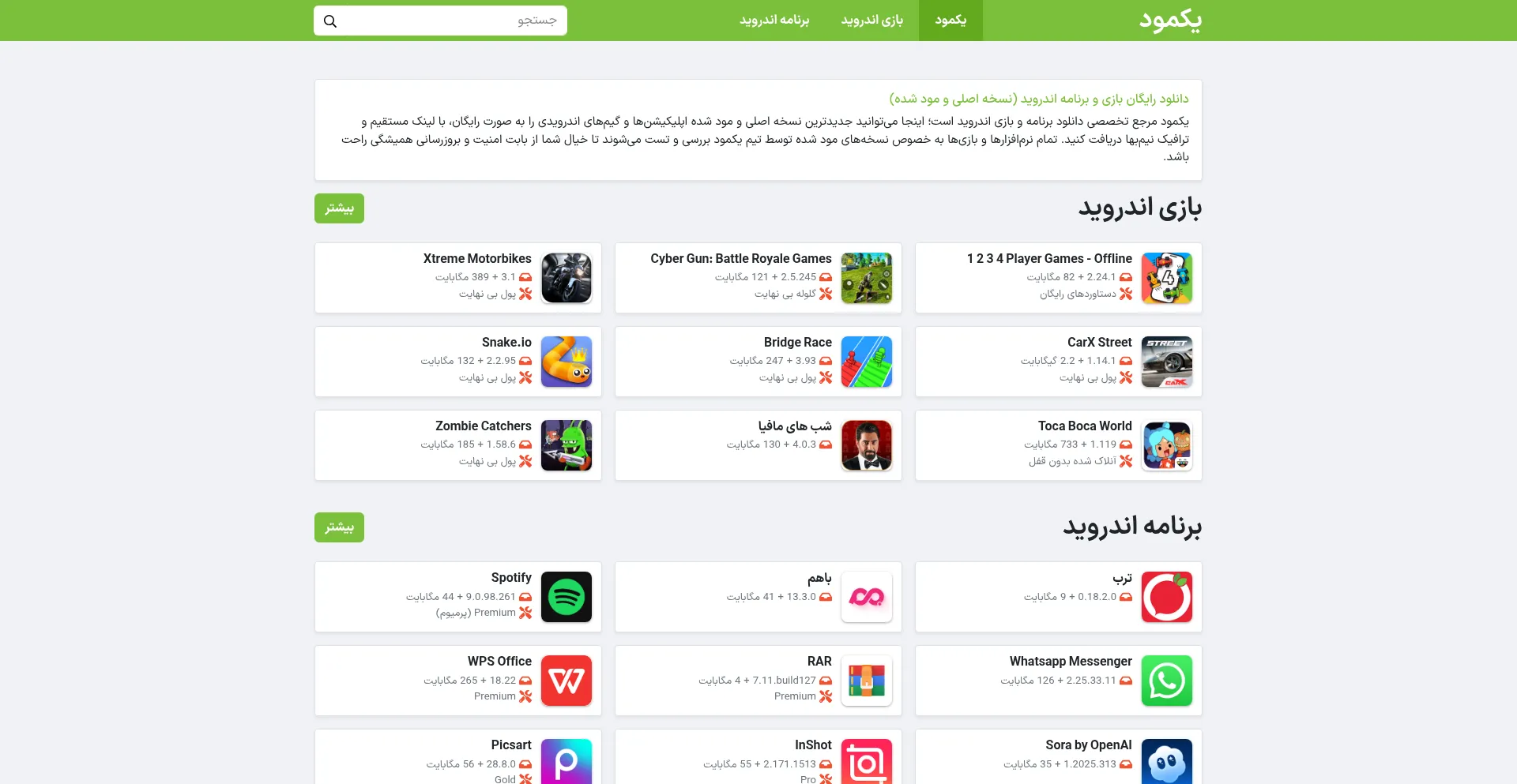 یکمود، مرجع معرفی، بررسی و دانلود برنامه و بازی اندروید با لینک مستقیم و ترافیک نیم‌بها است؛ بهت�...