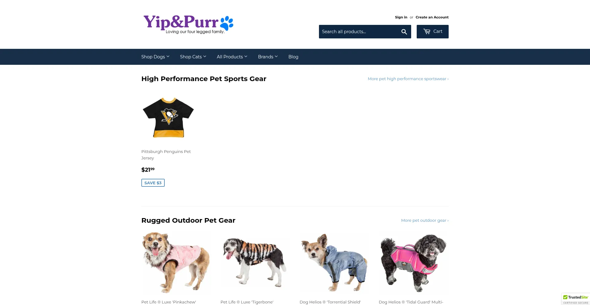 The yipandpurr.com website utilizes free e-commerce platform solutions, which may indicate cost-conscious operations but could also suggest limitations in security features, customer support, or advanced functionality compared to enterprise-grade solutions.