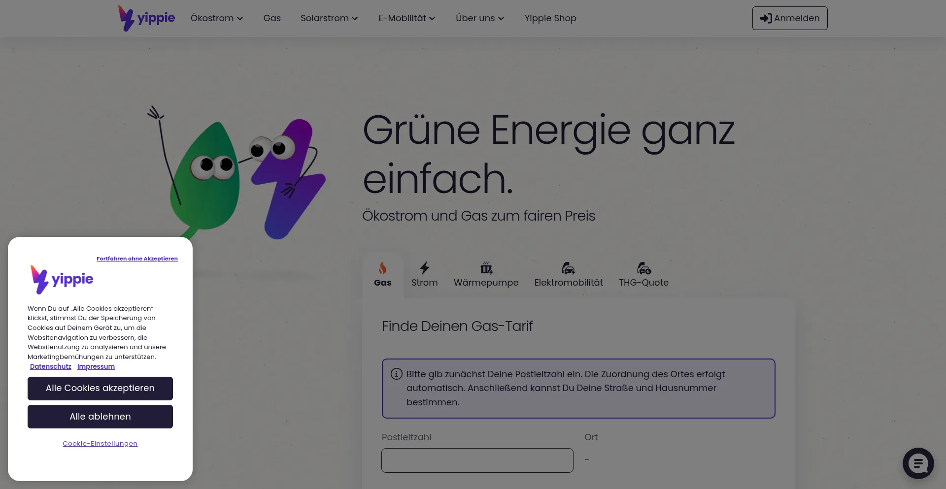 Yippie: Jetzt Ökostrom und Gas günstiger beziehen.