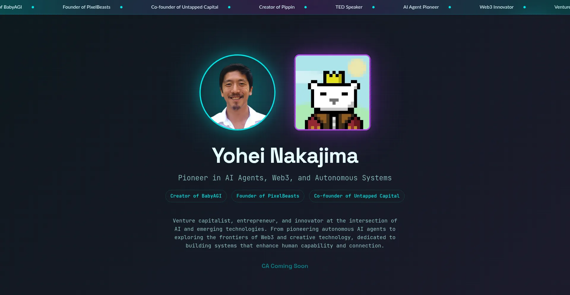 Tribute to Yohei Nakajima, creator of BabyAGI, PixelBeasts, and pioneer in AI agents, Web3, and autonomous systems.