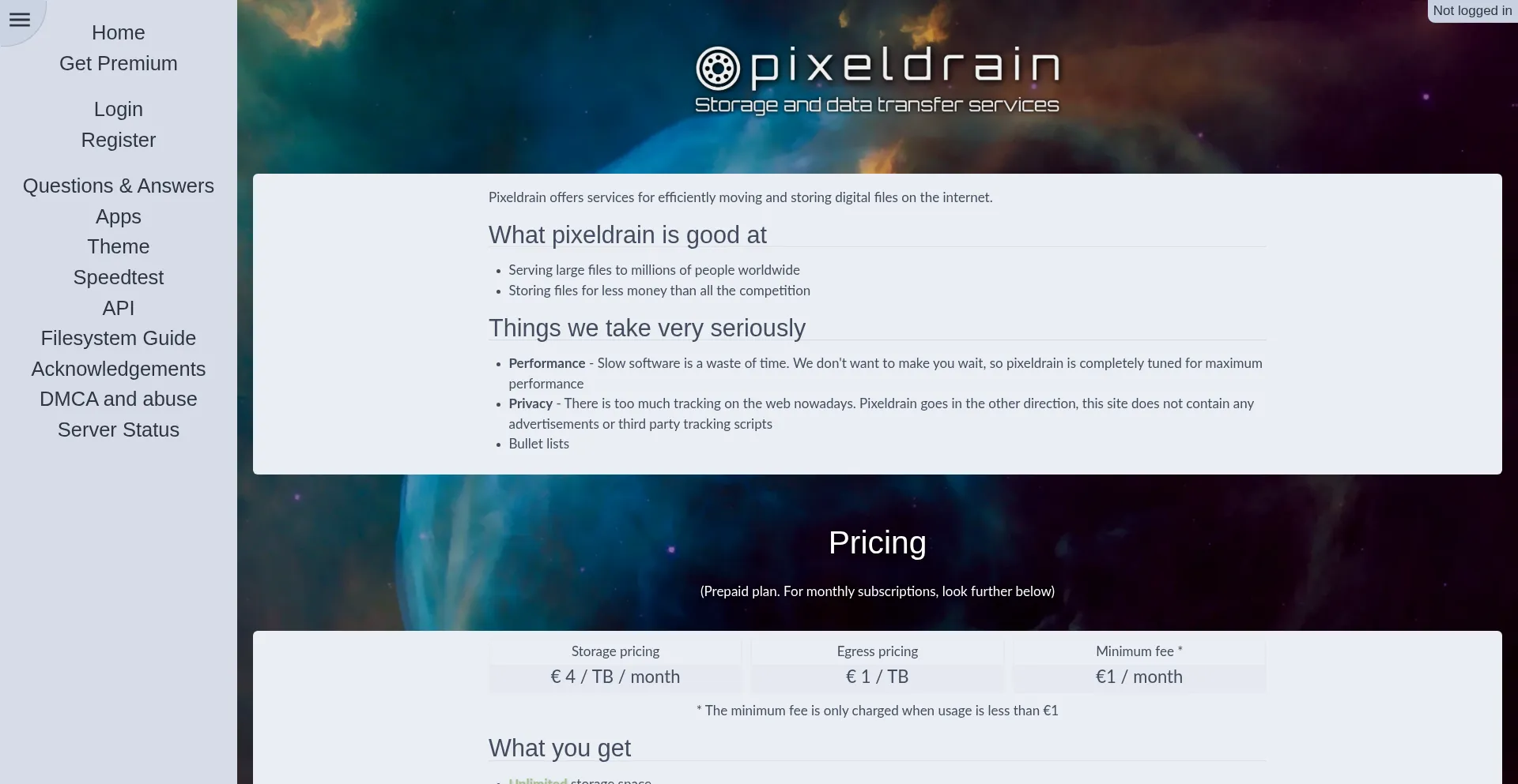 Pixeldrain is a file transfer service, you can upload any file and you will be given a shareable link right away. pixeldrain also supports previews for images, videos, audio, PD...