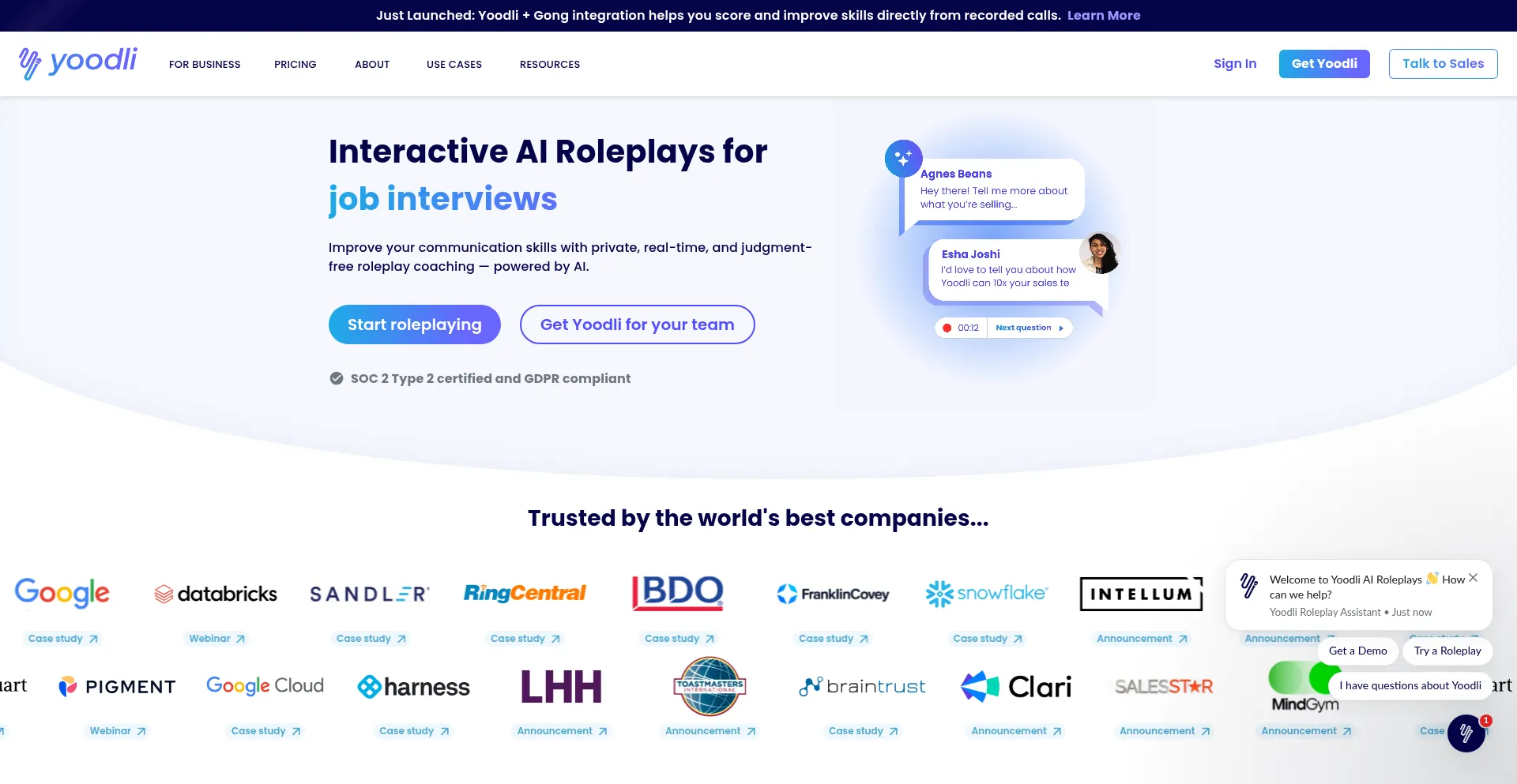 The yoodli.ai website uses Google Tag Manager to add and update tracking tags on its website.