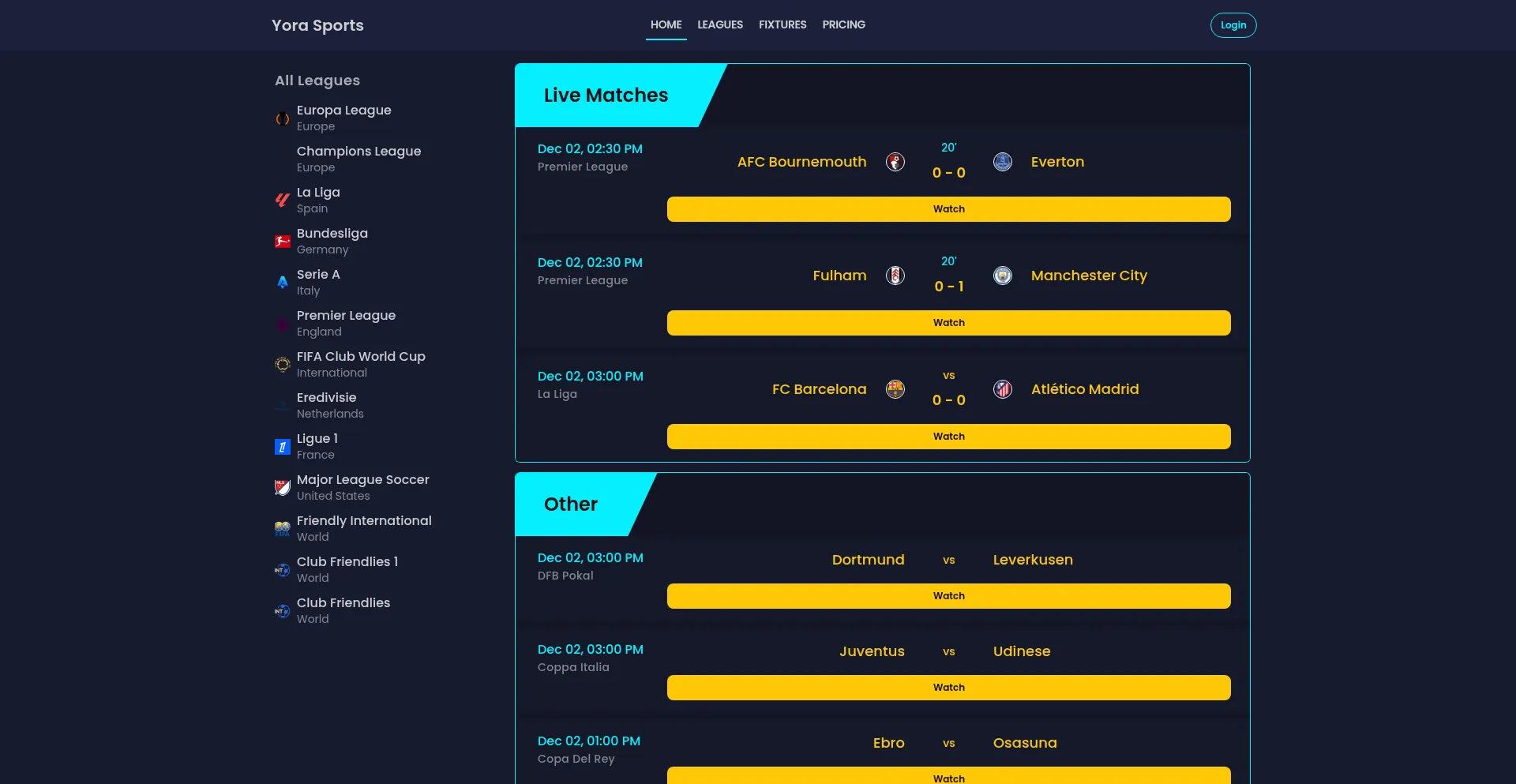 Yora Sports | Football live stream online | Football live score