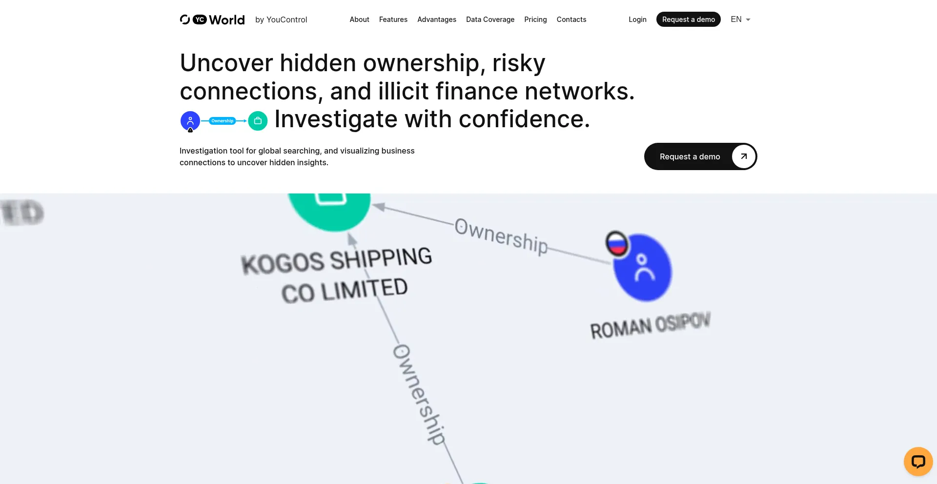 Investigation tool for global searching, and visualizing business connections to uncover hidden insights.
