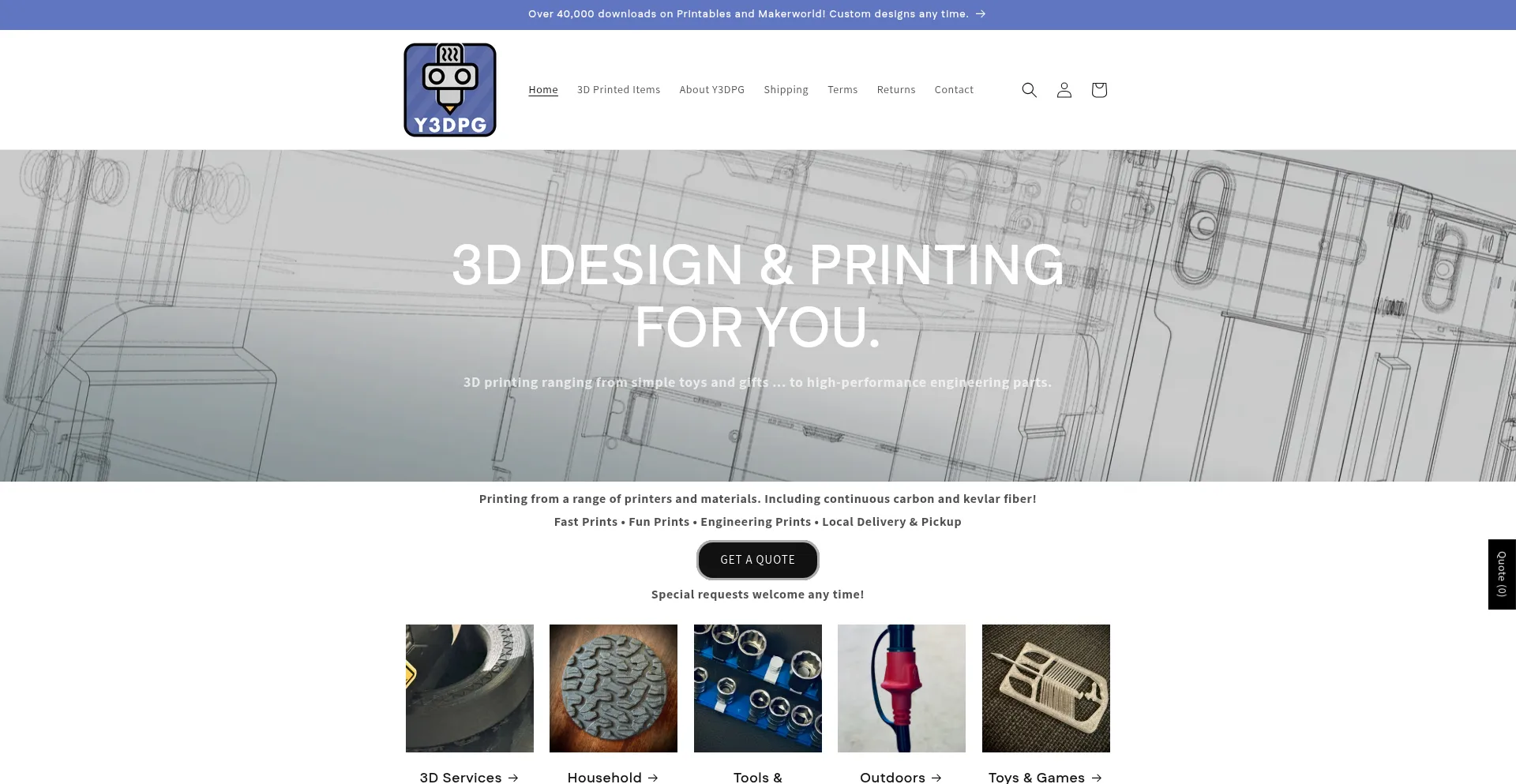 Analysis indicates that your3dprintguy.com operates as an e-commerce platform facilitating online transactions for goods or services. The website implements shopping cart functionality, payment processing systems, and product catalog features typical of commercial retail operations.