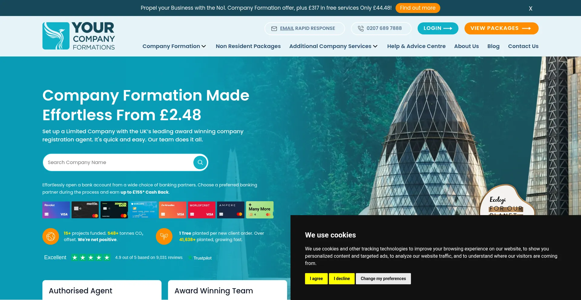 yourcompanyformations.co.uk has a good Trustpilot score (4.9) based on 9031 reviews, indicating a high level of trust from customers. It is a good sign of legitimacy!