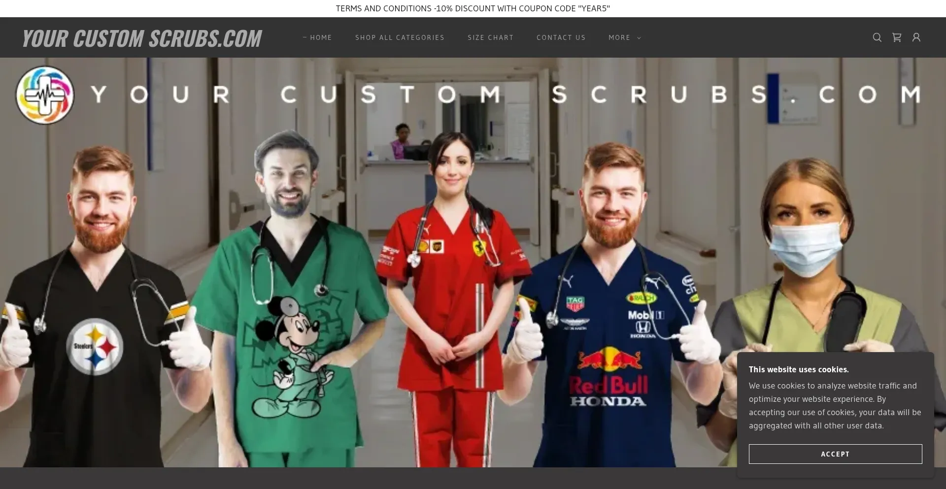 The website implements cookie consent mechanisms in compliance with privacy regulations such as GDPR or CCPA. This demonstrates that yourcustomscrubs.com adheres to data protection standards and provides users with control over personal data collection practices.