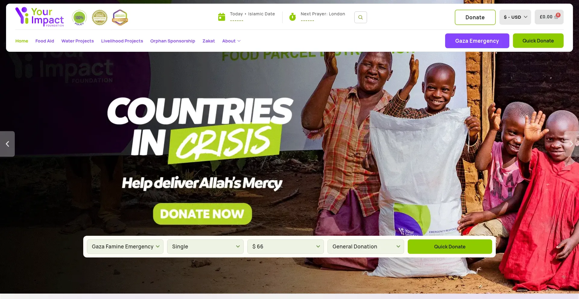 Your Impact Foundation is a trusted Muslim charity in UK. We provide Zakat charity, Sadaqah donations, water projects, orphan sponsorship, and emergency relief.