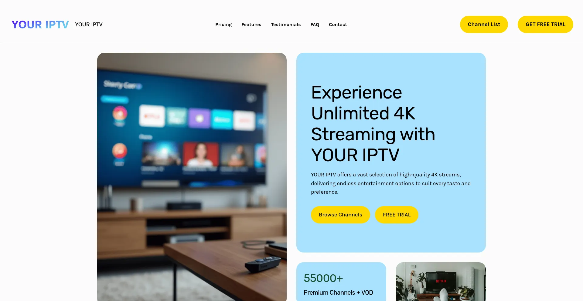Experience Unlimited 4K Streaming with YOUR IPTV YOUR IPTV offers a vast selection of high-quality 4K streams, delivering endless entertainment options to suit every taste and p...